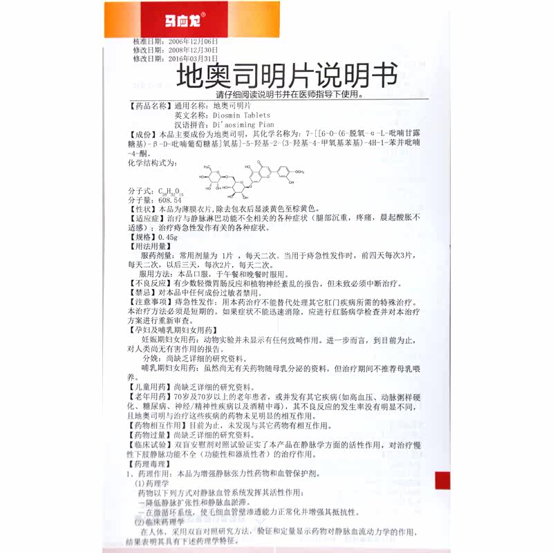 马应龙 Пленка оазиса Земли 0,45 г*24 таблетки/коробка обработка различных симптомов, связанных с венозной лимфодкой для лечения острых приступов геморроя.