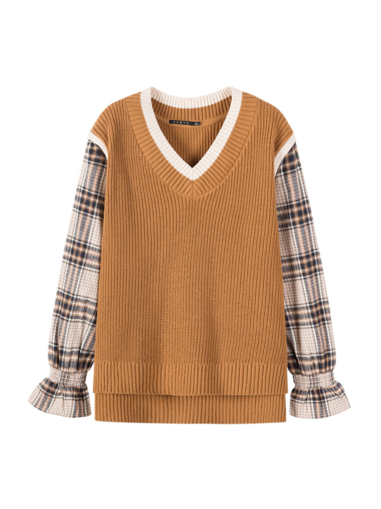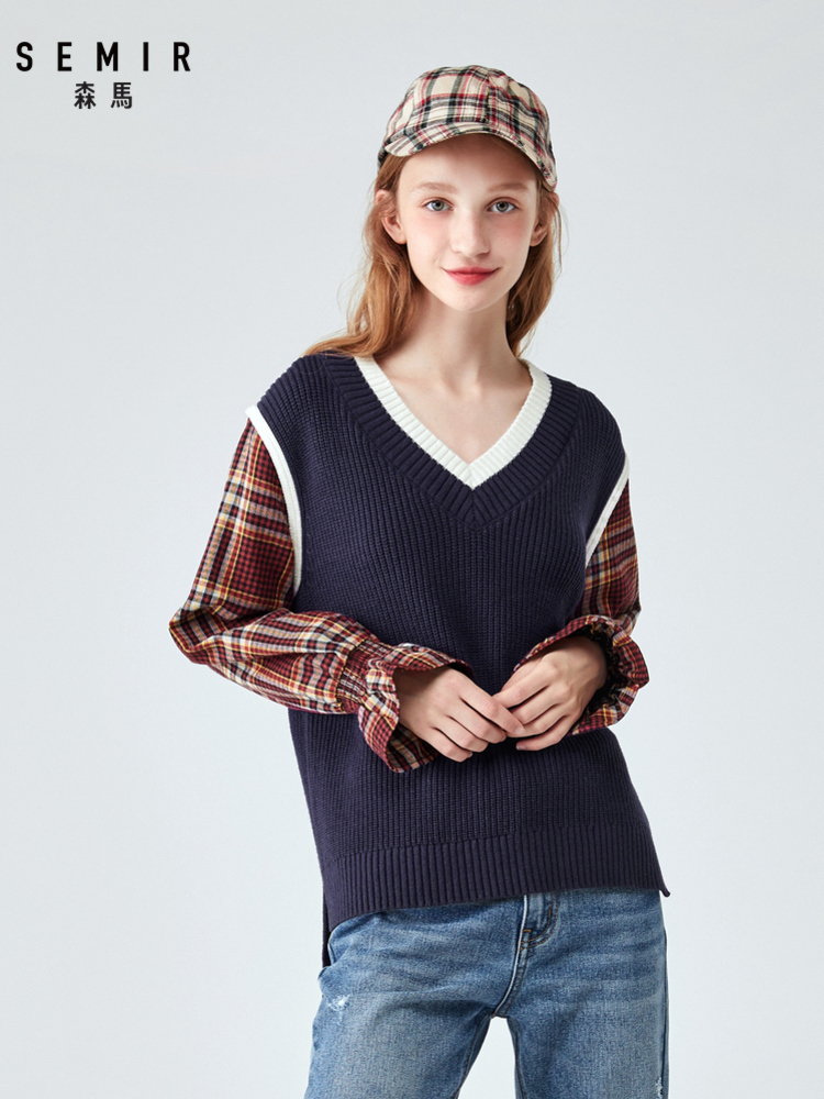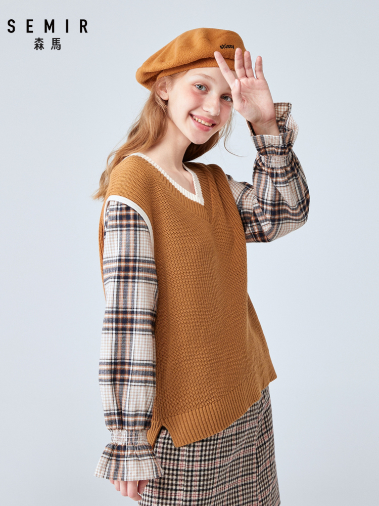 Semir, комплект, осенний свитер, цветной мегафон, V-образный вырез, свободный крой