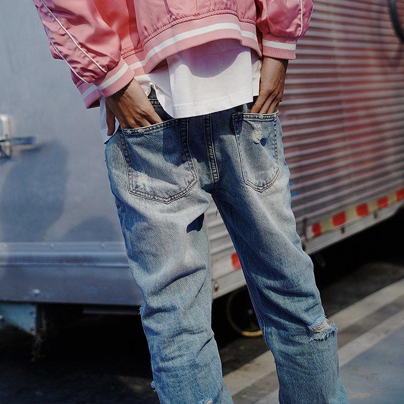 Оригинальные джинсы, в американском стиле, свободный прямой крой