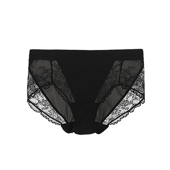 Легкая и матовая текстурированная ткань сплачивается прозрачной и туманной кружевной тканью, которая имеет нежный штрих, мягкую кожу и эластичность, чтобы обернуть ягодицы.