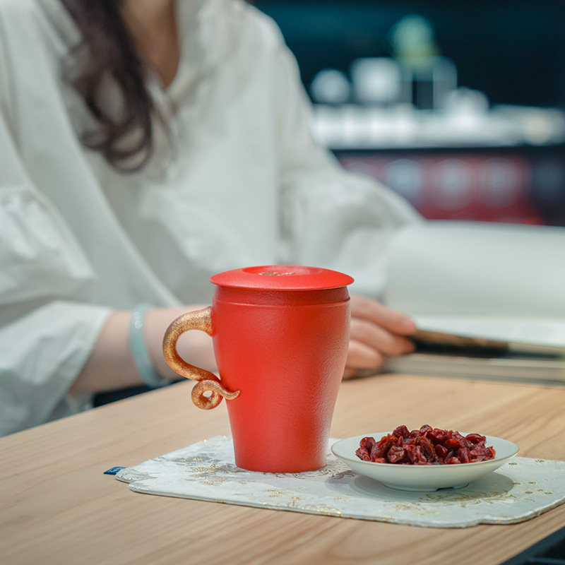 Wanlitang Mark Cup Creative Pare Cup Cup Gift Ceramics Covered Office Tea Cup Женская дракон и Феникс Ченгсианг