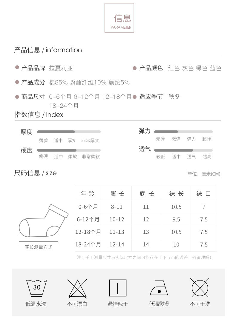 Возрастная категория: 0-6 мес., 8-11см, 6-12 мес., 10-12см, 12-18 мес., 11-13см, 18-24 мес., 12-14см