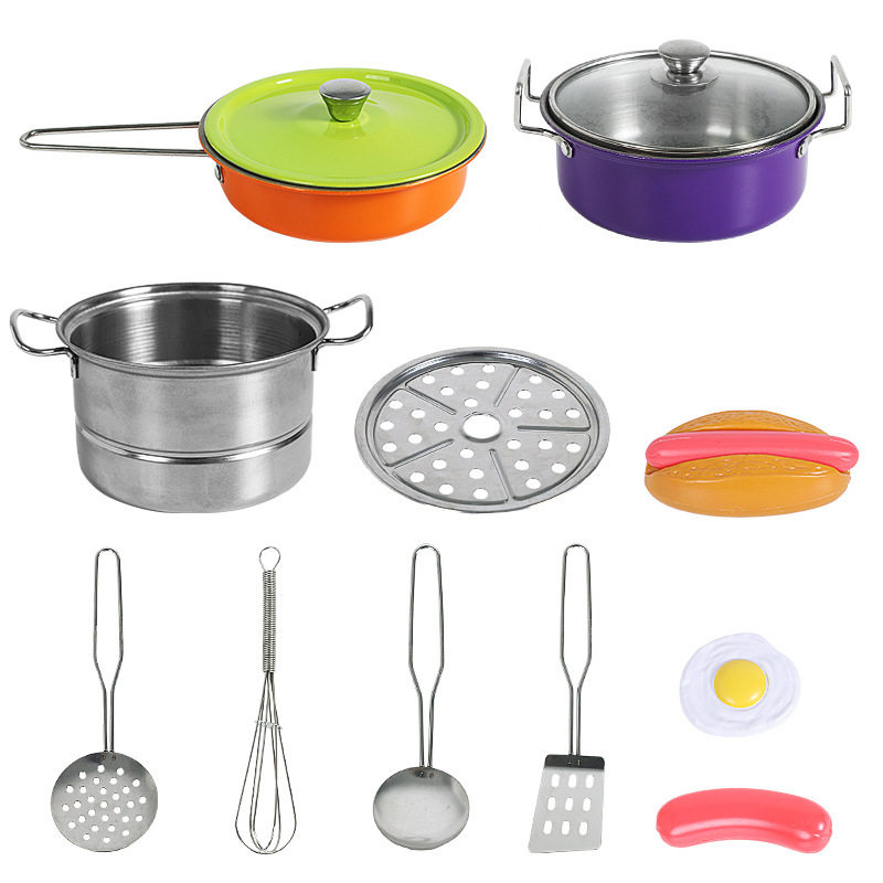 Детская посуда из нержавеющей стали, кухня, кухонная утварь, игра с едой, маленький комплект, семейная игрушка