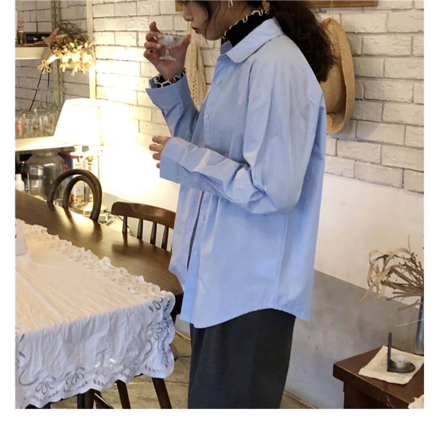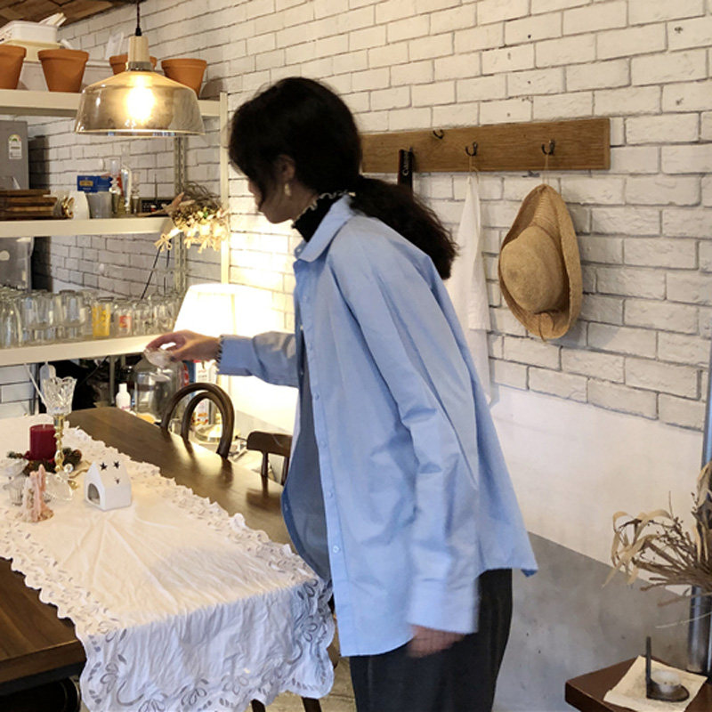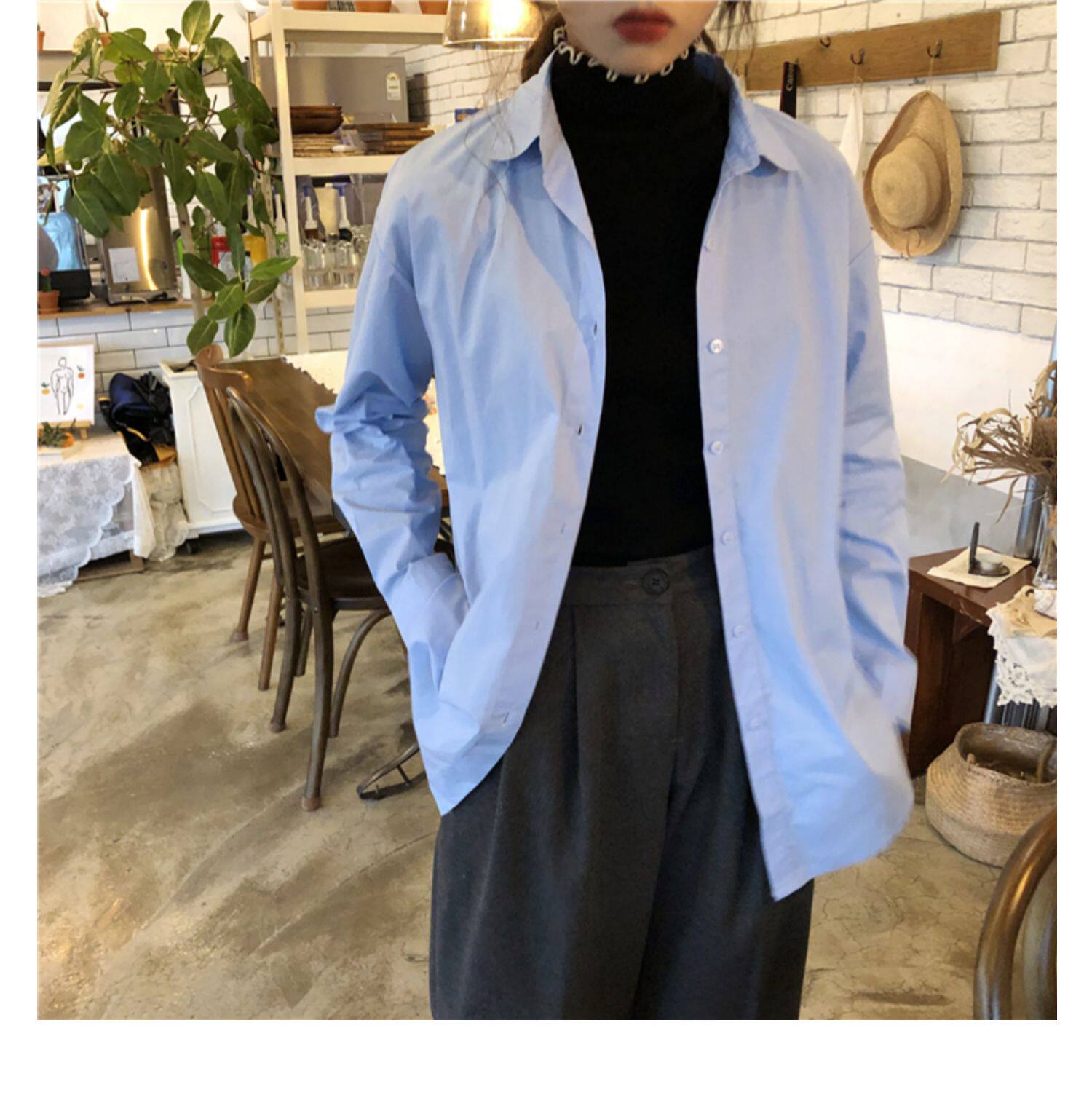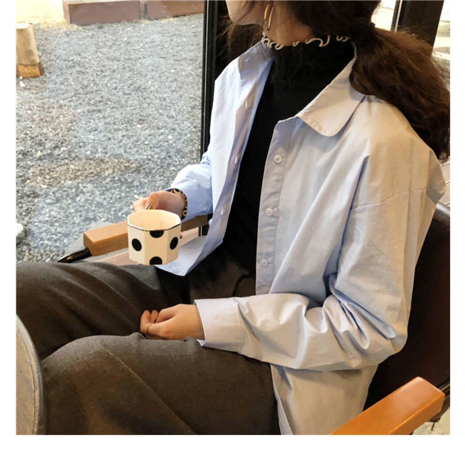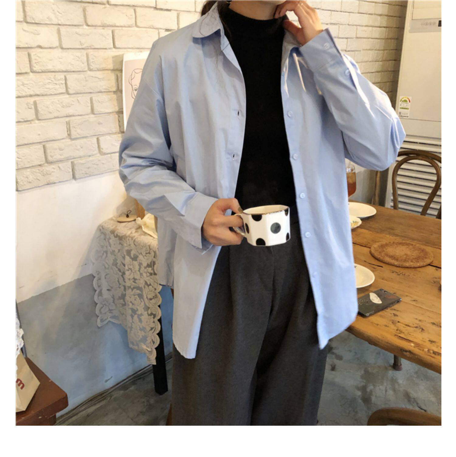 Осенняя лазурная свежая рубашка, брендовый кардиган, свободный крой