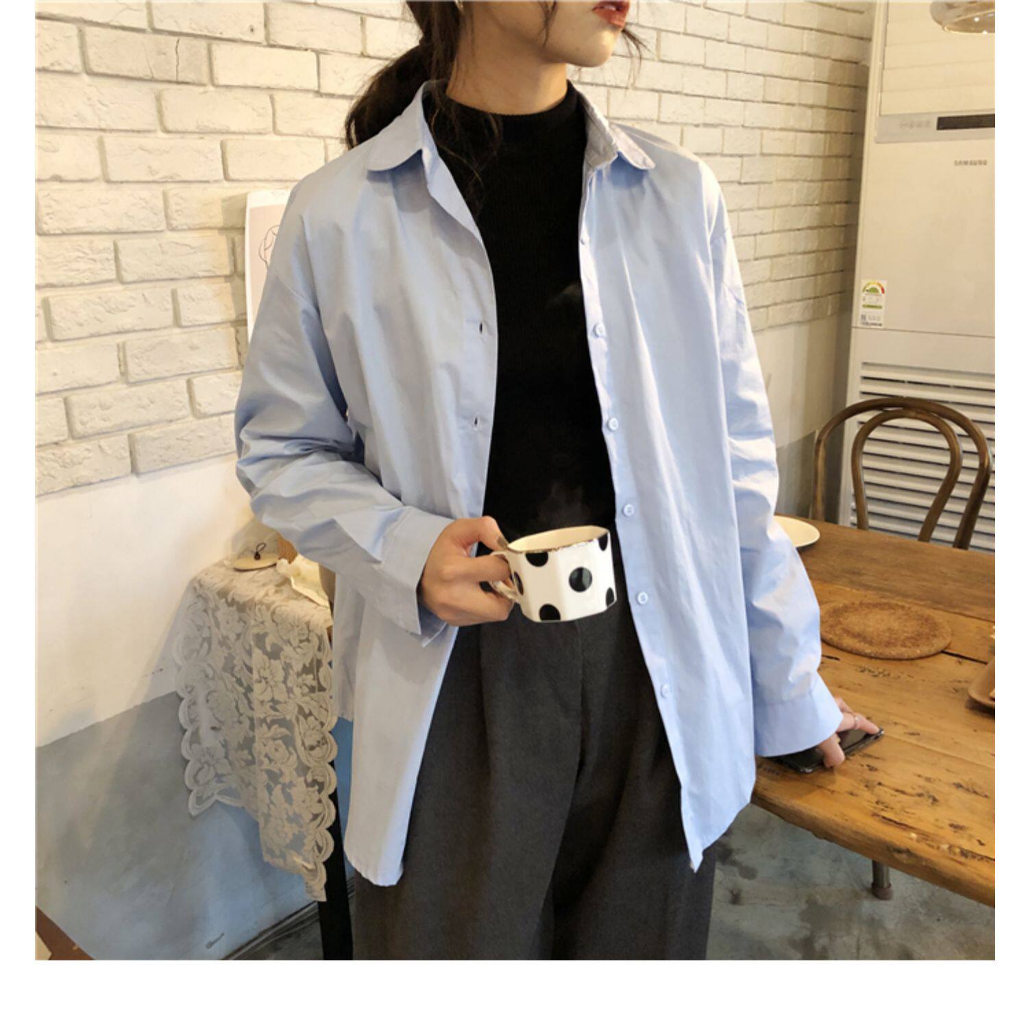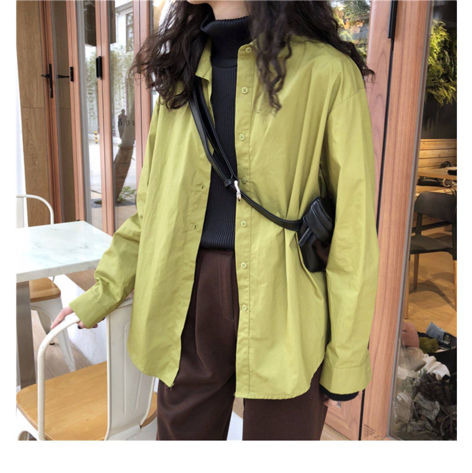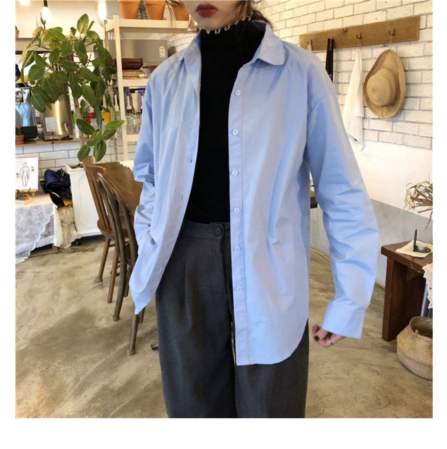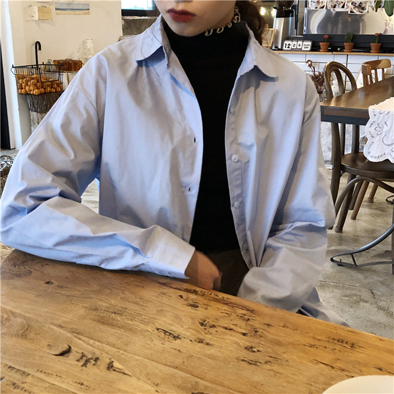 Осенняя лазурная свежая рубашка, брендовый кардиган, свободный крой