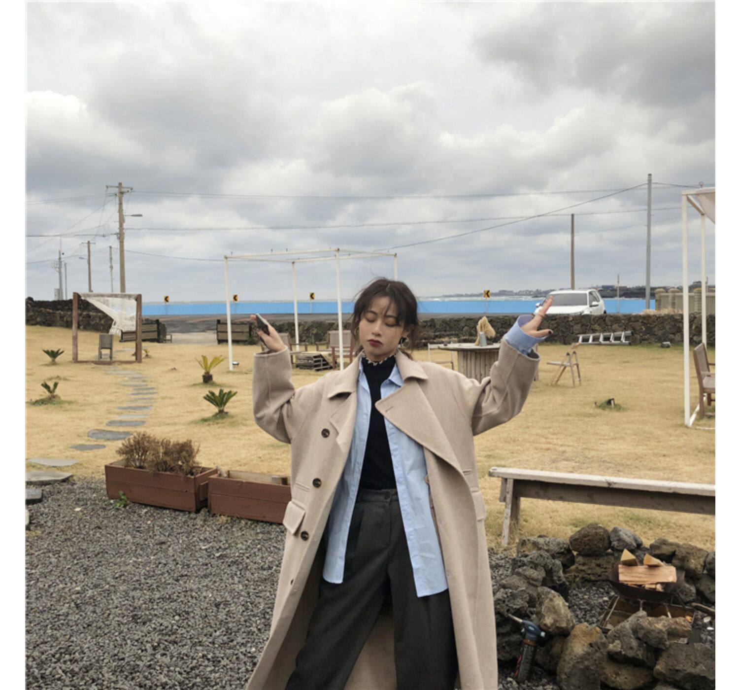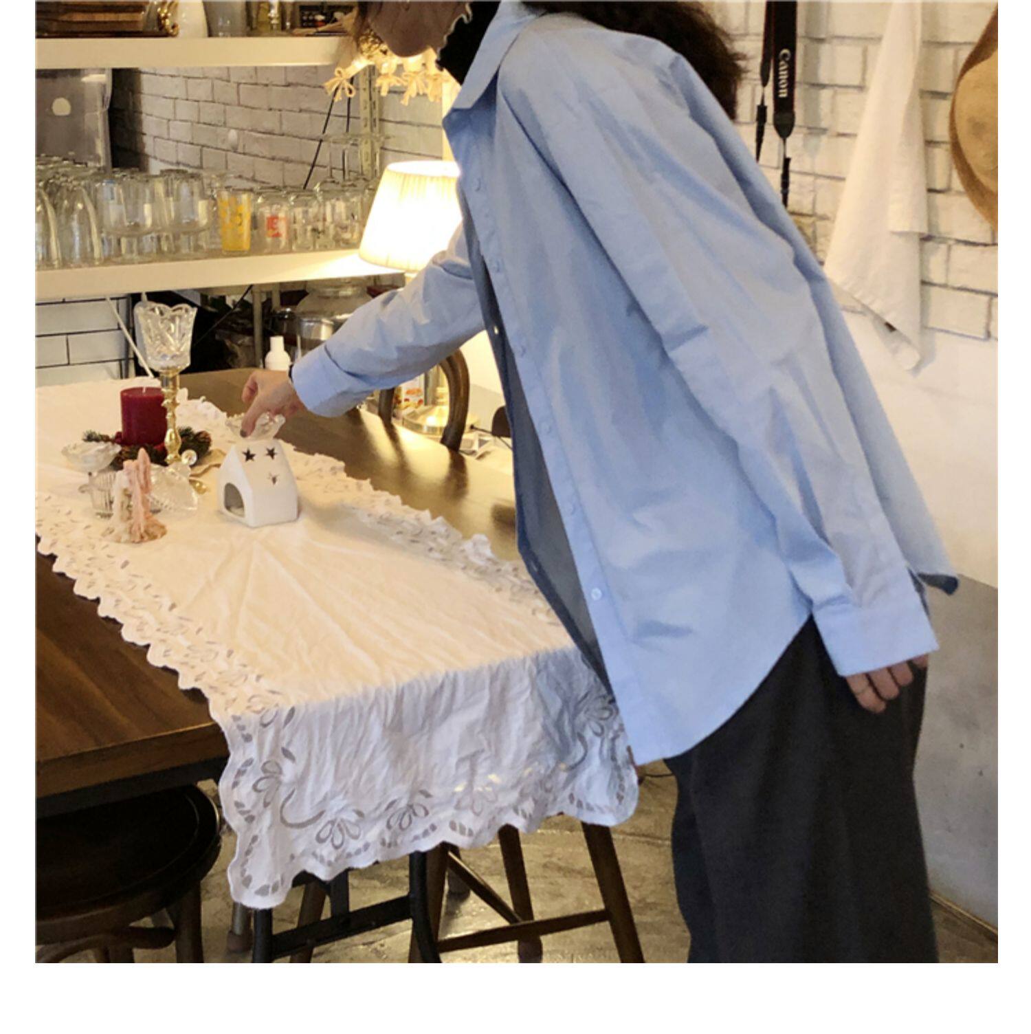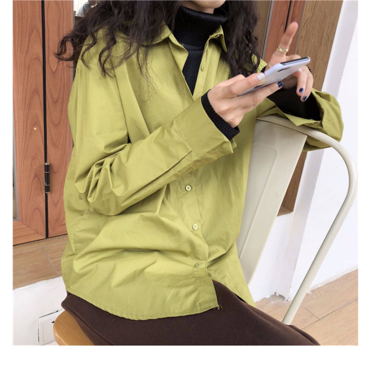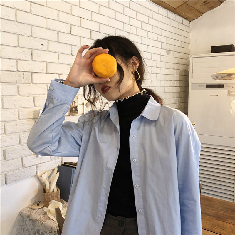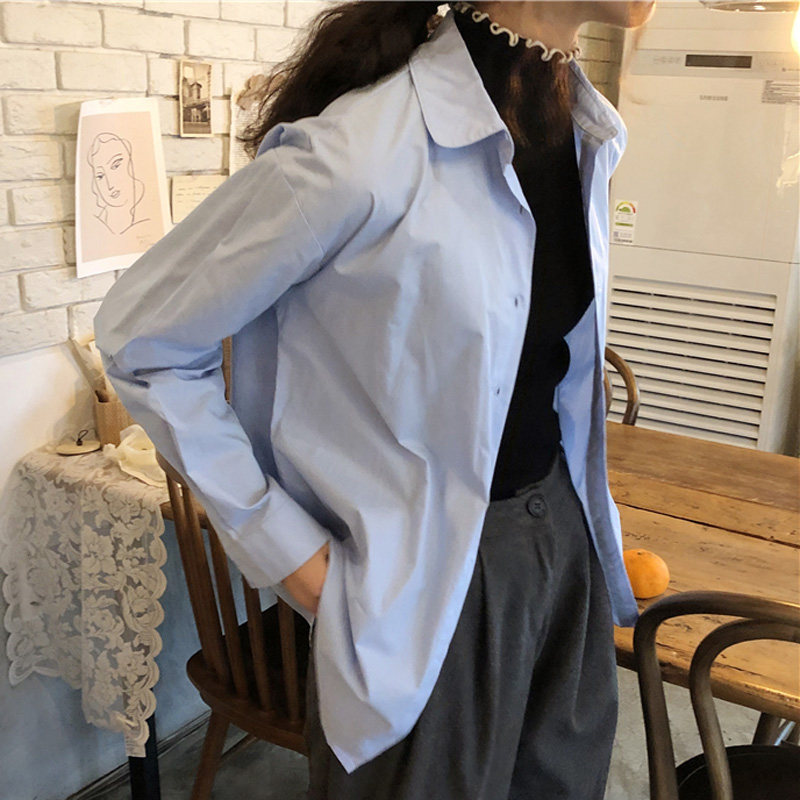 Осенняя лазурная свежая рубашка, брендовый кардиган, свободный крой