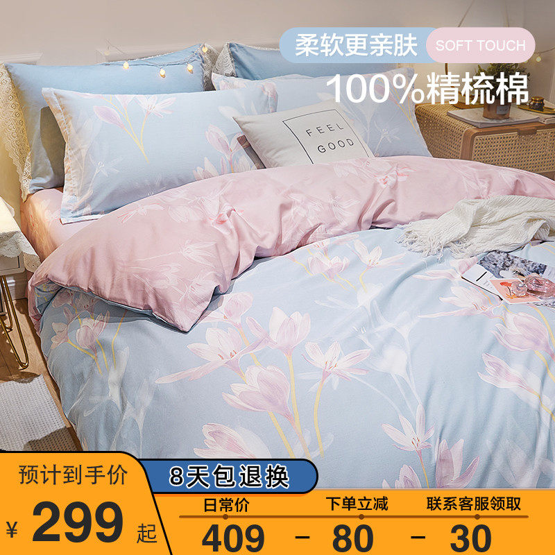 博洋 Хлопковый комплект, брендовый свежий пододеяльник, простыня, покрывало, 4 предмета, постельные принадлежности