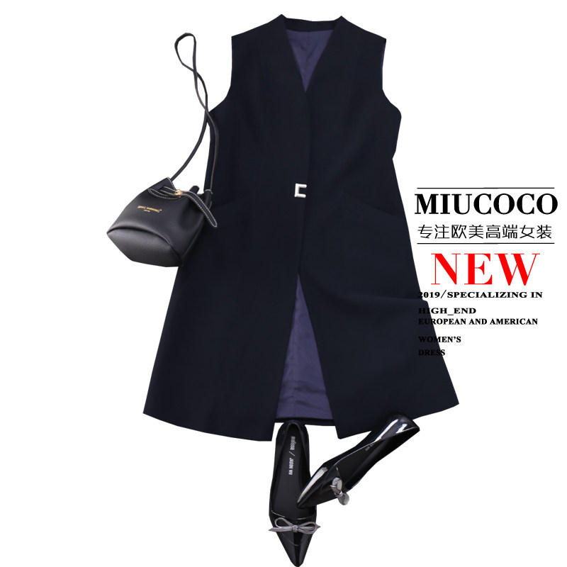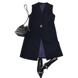 Ткань имеет провенанс!Класс Пэн изысканный и элегантный, тонкий и прямой!Красивый жилет средней длины с V-образным вырезом в деловом стиле