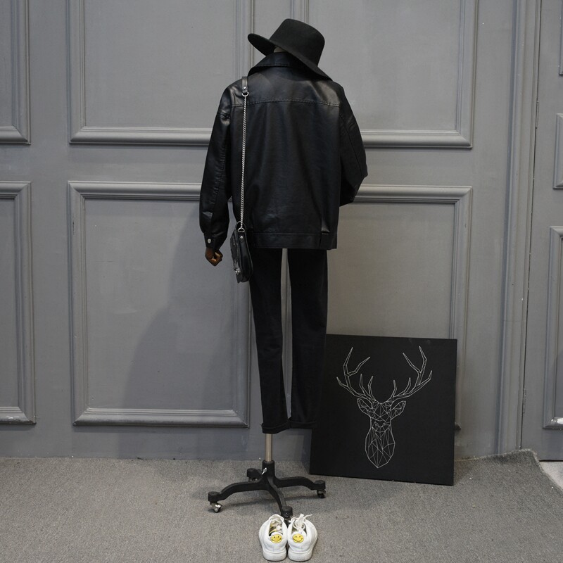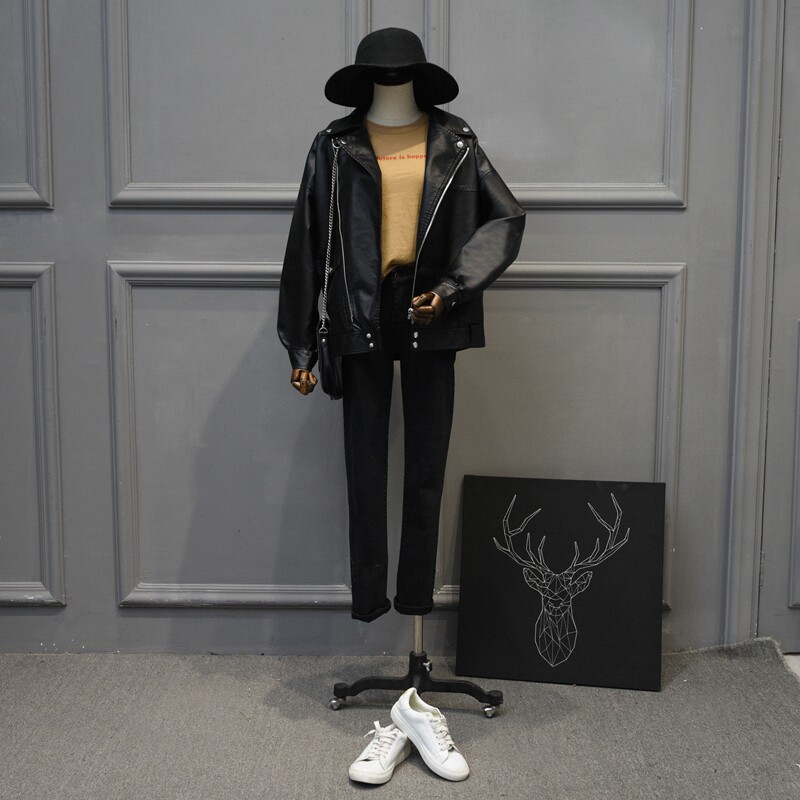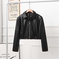 Осенняя короткая полиуретановая куртка, коллекция 2023, свободный крой, в корейском стиле, подходит для полных девушек