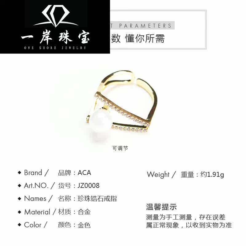 Искусственное регулируемое универсальное кольцо из жемчуга с цирконом, японские и корейские, простой и элегантный дизайн, популярно в интернете