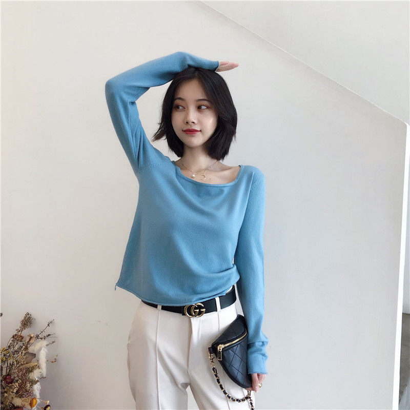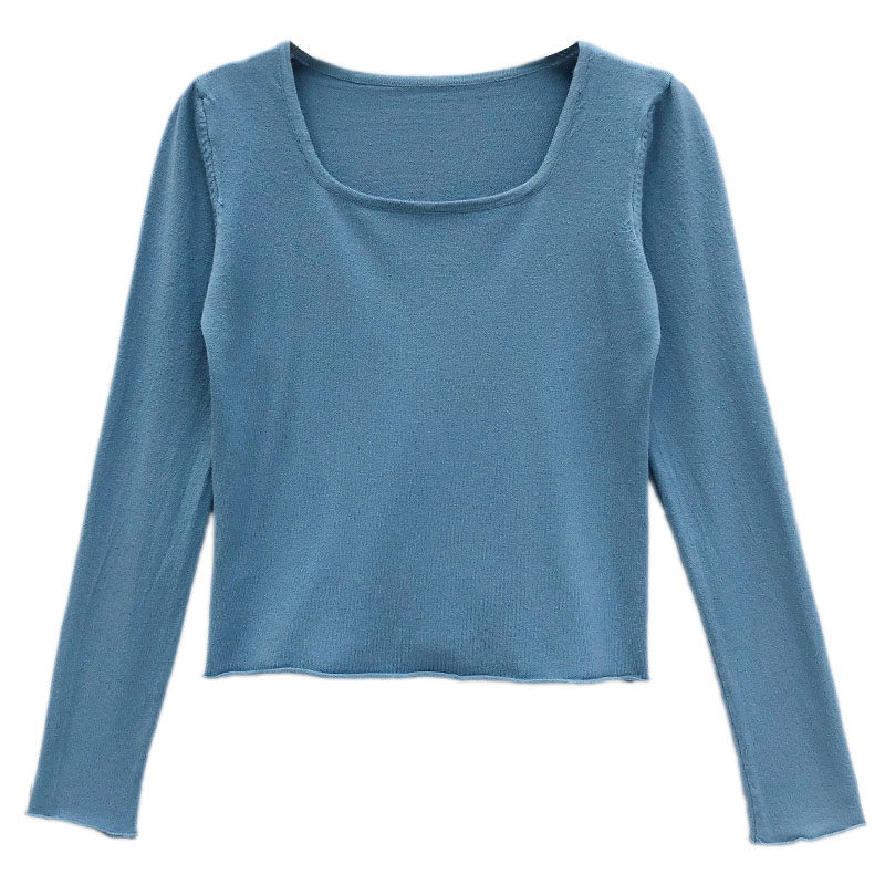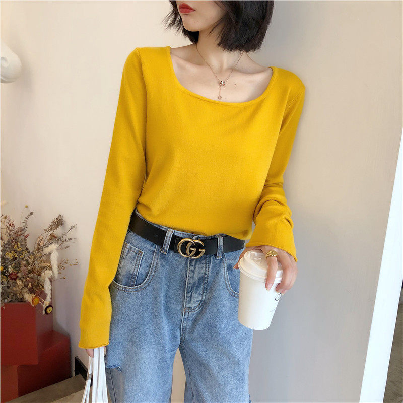 Трикотажный тонкий короткий лонгслив, базовый приятный телу весенний осенний свитер, квадратный вырез, 2022 года, оверсайз