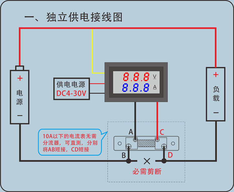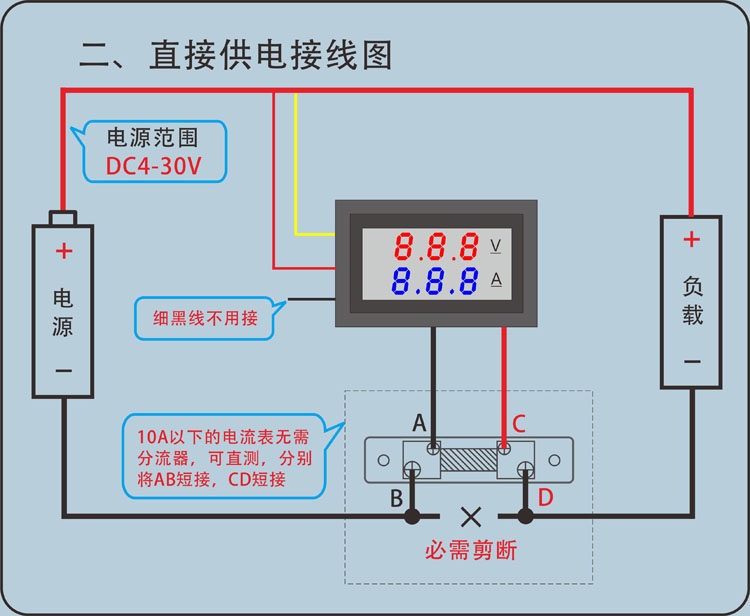 Подключитесь к Downtale, подключите тонкую красную линию и тонкую черную линию к источнику питания, диапазон50AДисплей тока заголовка0.00График есть100AПоверхностный дисплей0.0Предметы
