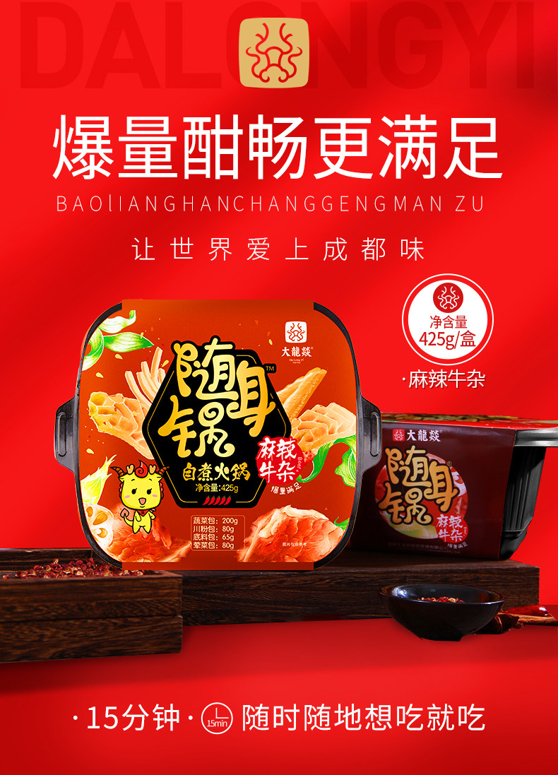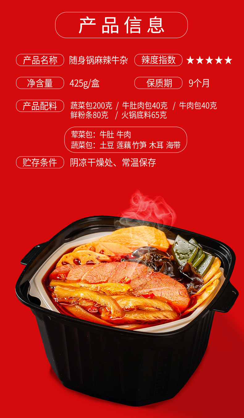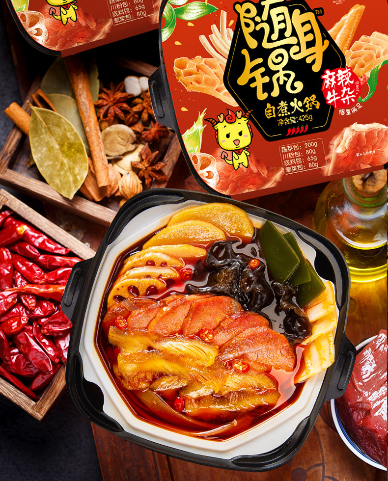 大龙燚 Портативный горшок с острым говяжьим смешанным 2 коробками с самостоятельной и удобной Lazy Net Red Hot Pot