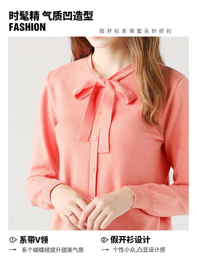 艾米恋 Трикотажный осенний свитер, цветной кардиган, лонгслив с круглым воротником