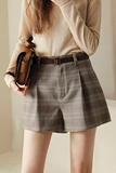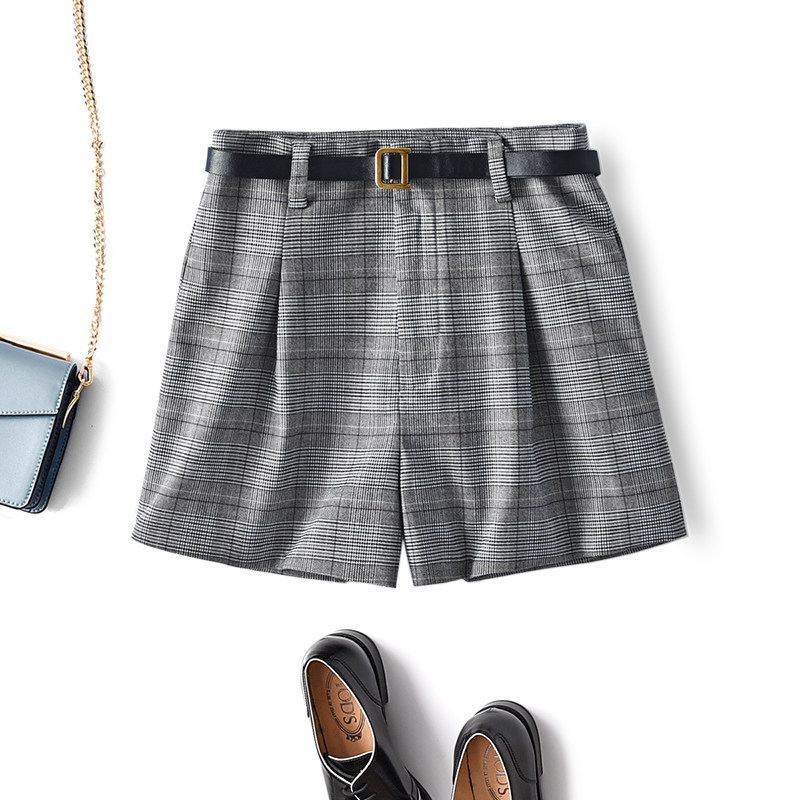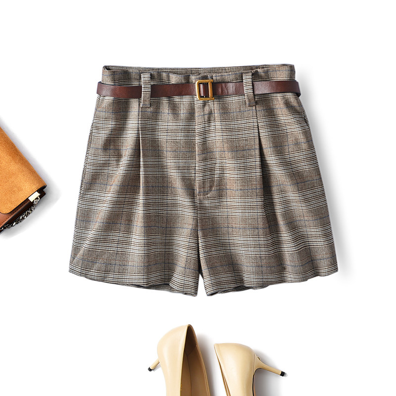 Качественный ретро шерстяной костюм, шорты, ремень, в британском стиле, высокая талия, А-силуэт