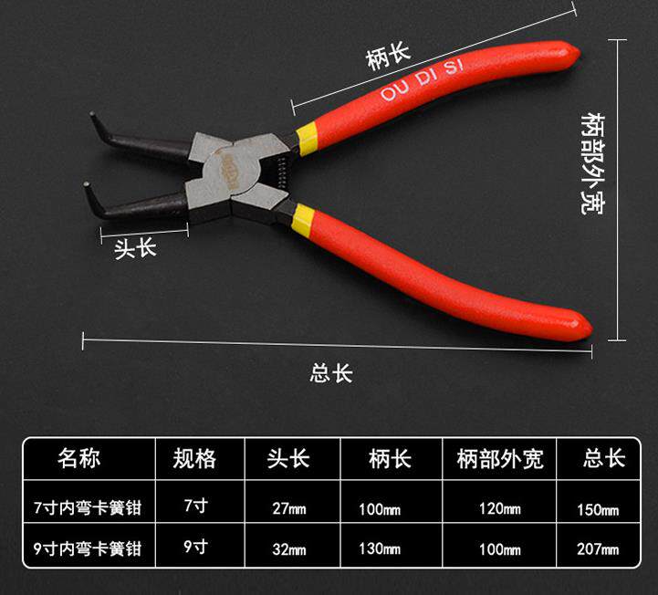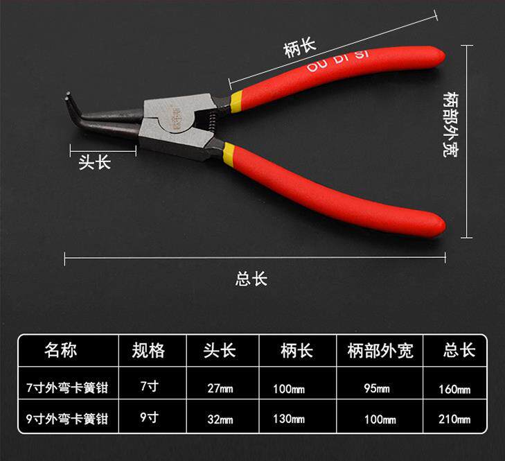 Щипцы для стопорных колец, внешний зажим и внутренний зажим, коленчатый вал, 7-дюймовые клещи для стопорных колец, плоскогубцы для внутренних прямых и наружных пружин типа Е, клещи для наружного расширения.