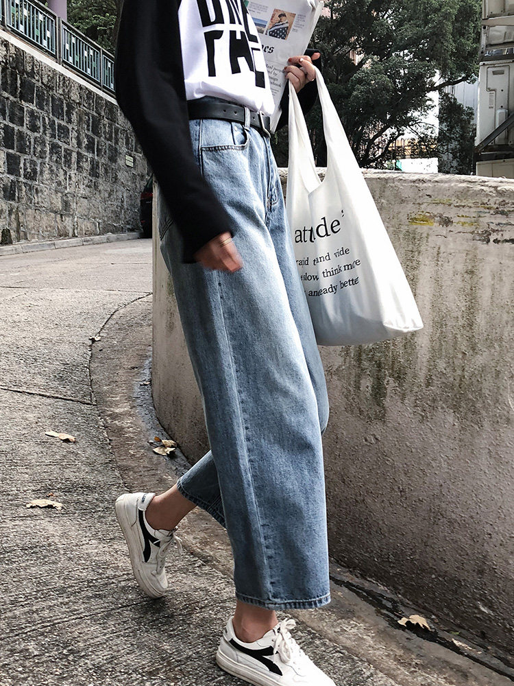 Штаны, осенние демисезонные джинсы, свободный прямой крой, высокая талия, большой размер, подходят для подростков