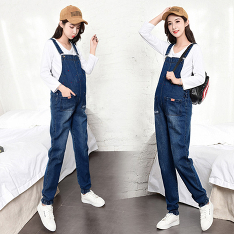 Комбинезон, осенние модные штаны, весенние джинсы для беременных, комплект, свободный крой, оверсайз, популярно в интернете