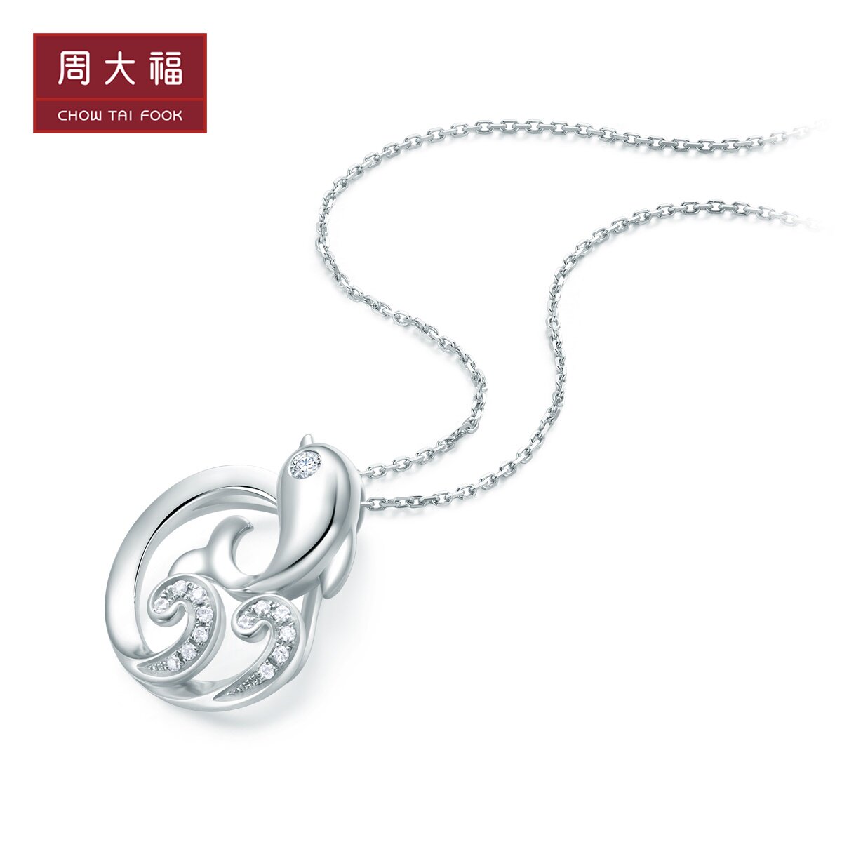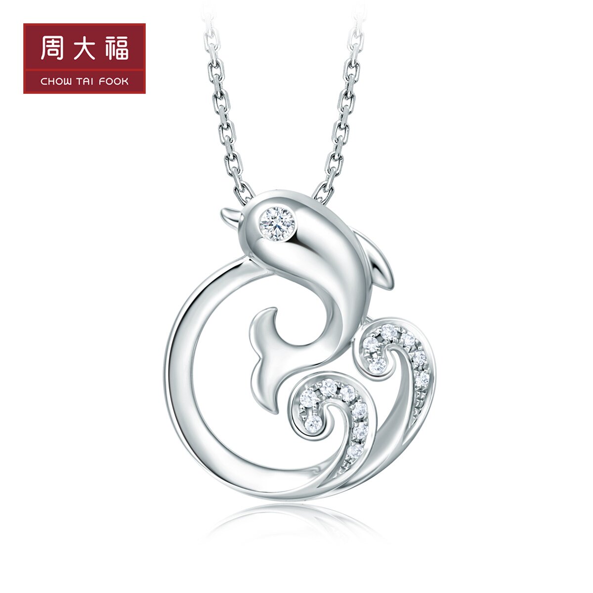 周大福 Подводная подводная серия Dolphin 18k Gold Diamond Pendent U177619 Отбор