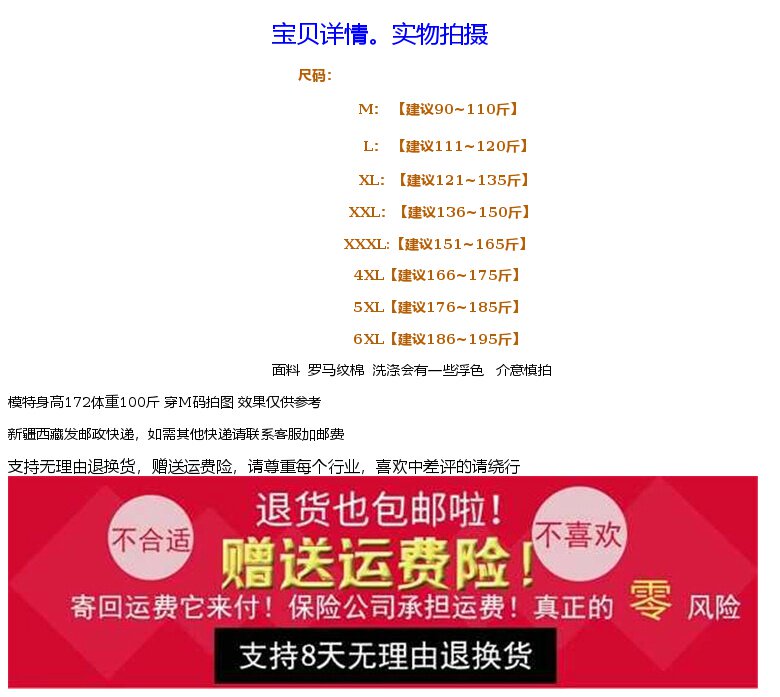 | Размер: | М [рекомендуется 90~109 фунтов], L [Предложение 110 ~ 120 Catties], XL [Предложение 121 ~ 135 Catties], XXL [Предложение 136 ~ 150 Catties], XXXL [рекомендуемый вес 151–165 фунтов], 4XL [рекомендуемый вес 166–175 фунтов], 5XL [рекомендуемый вес 176–185 фунтов], 6XL [рекомендуемый вес 186–195 фунтов] |