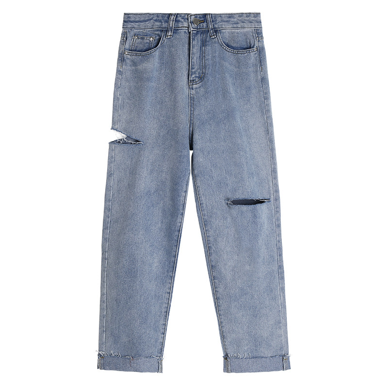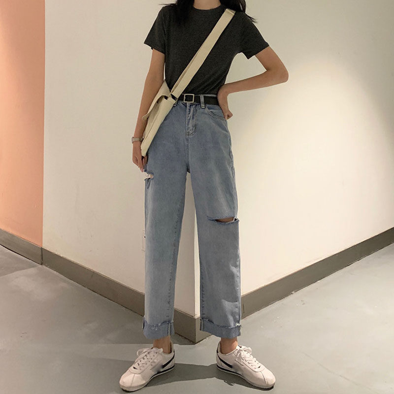 Осенние джинсы, штаны, высокая талия, коллекция 2021, в корейском стиле, большой размер, подходит для полных девушек, свободный прямой крой