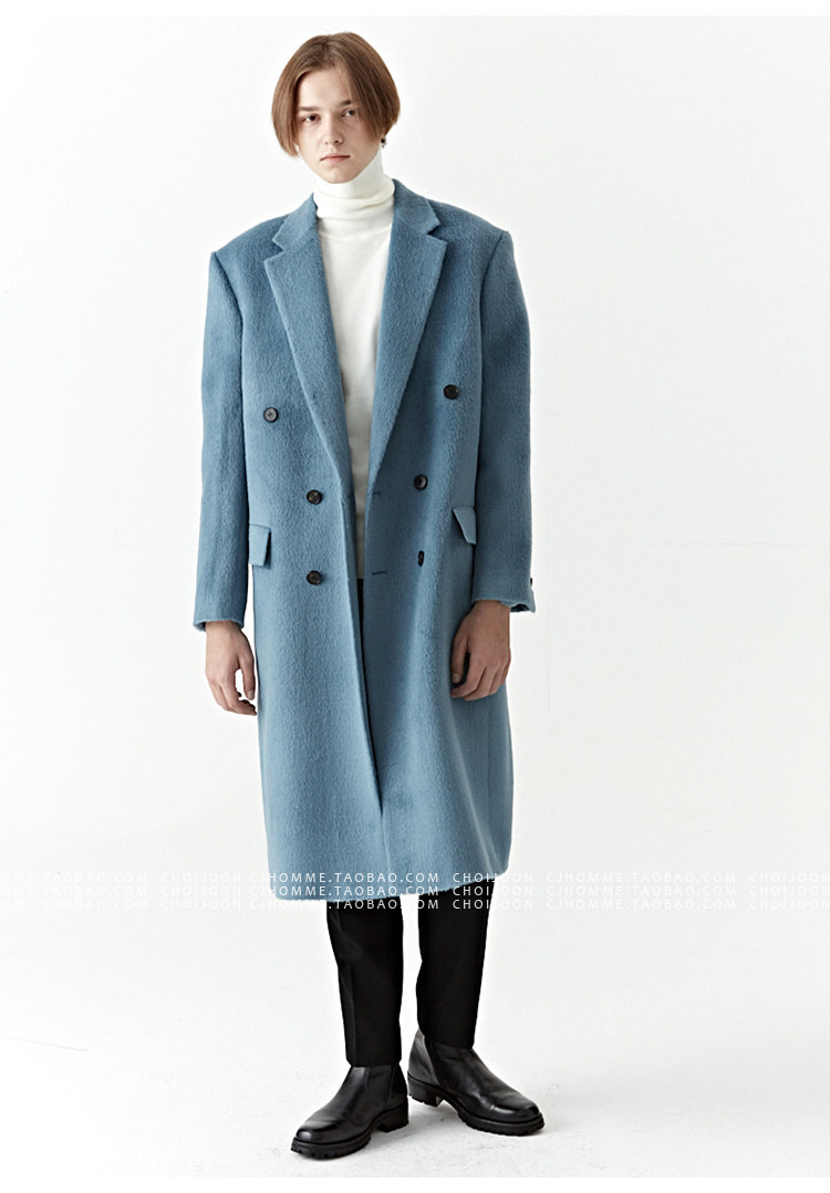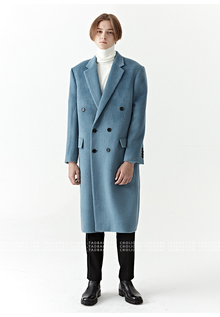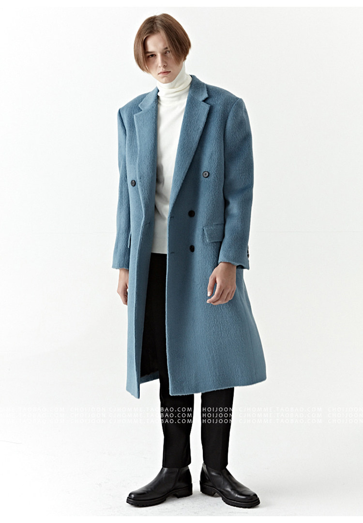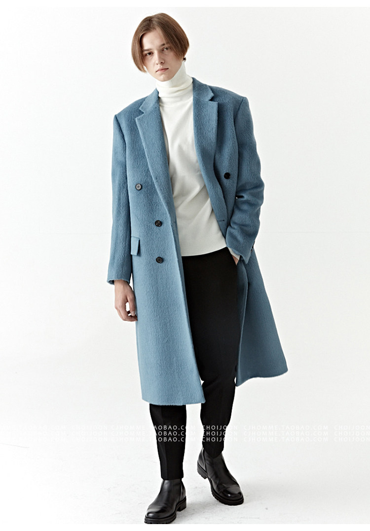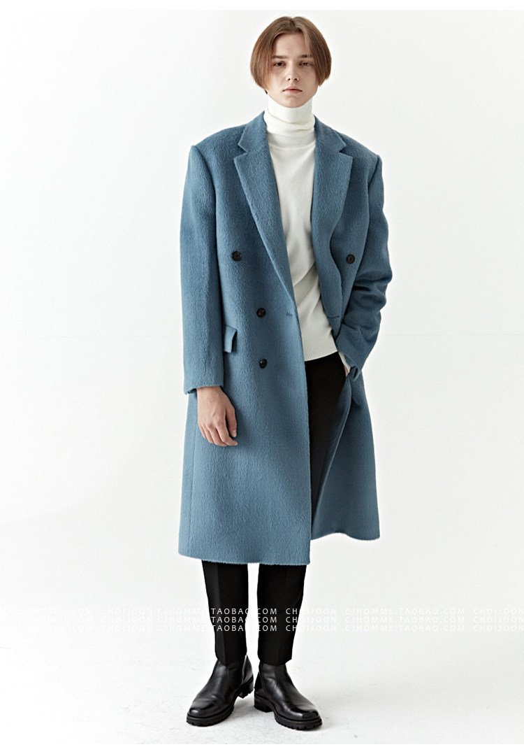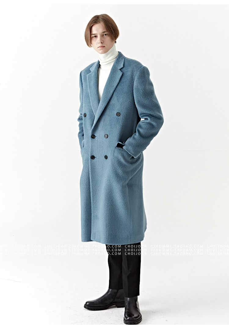Модное лазурное демисезонное шерстяное пальто, куртка, в корейском стиле