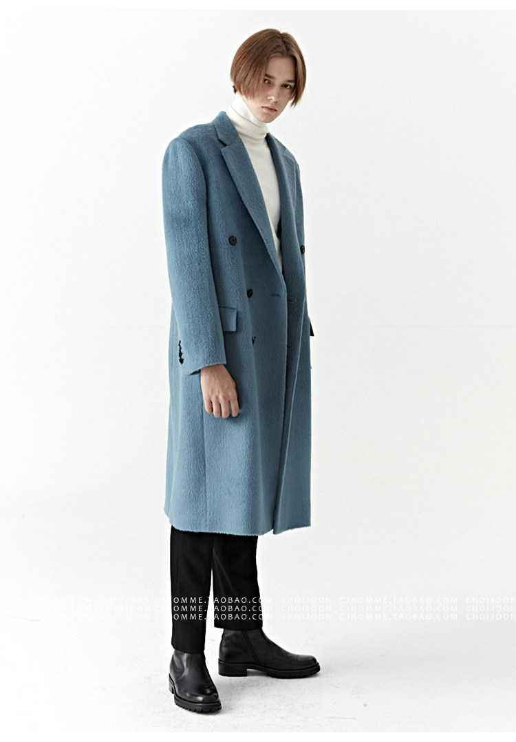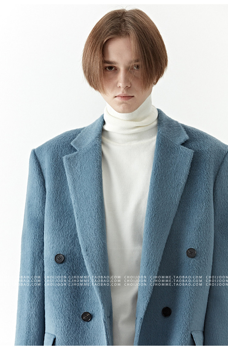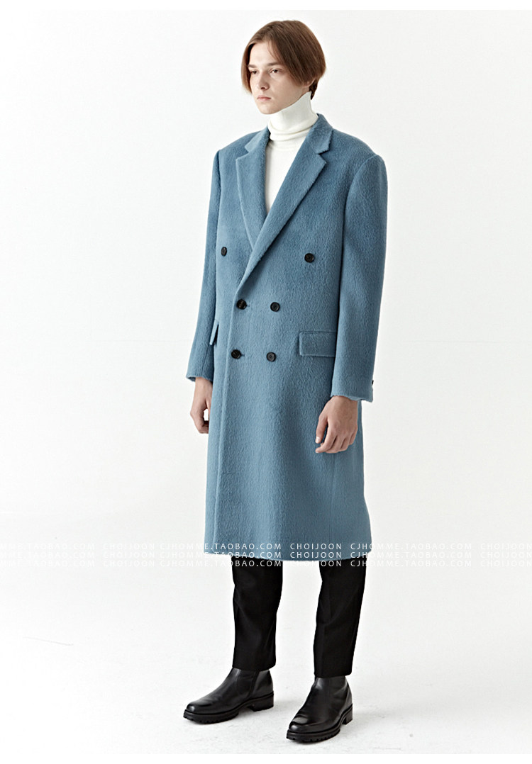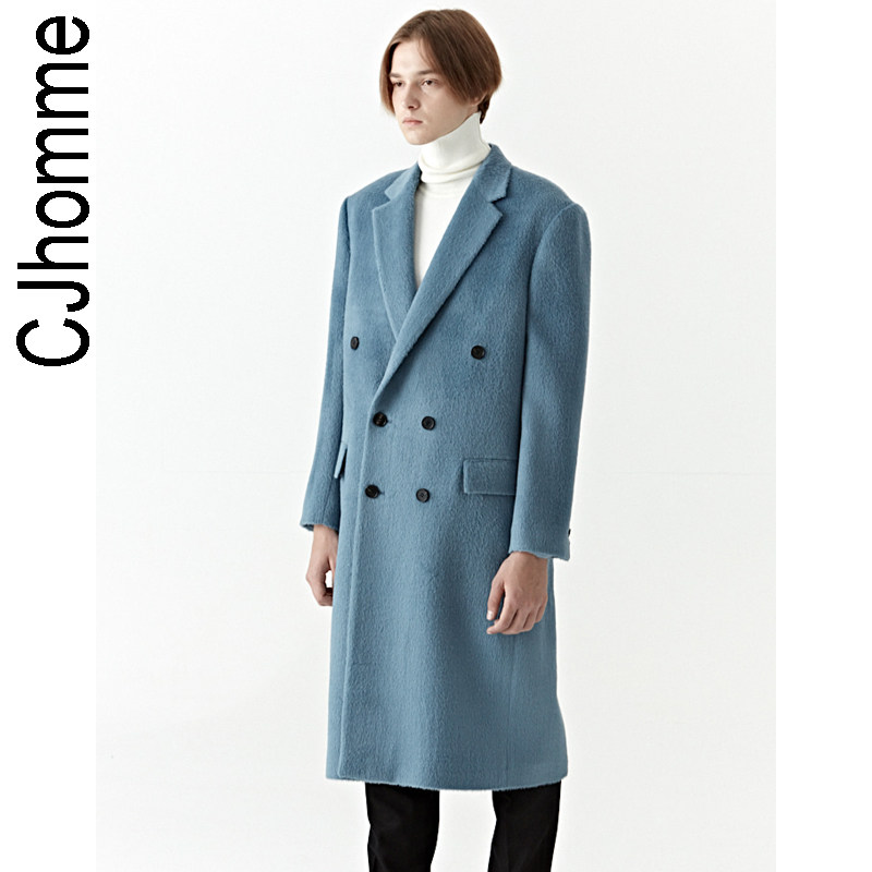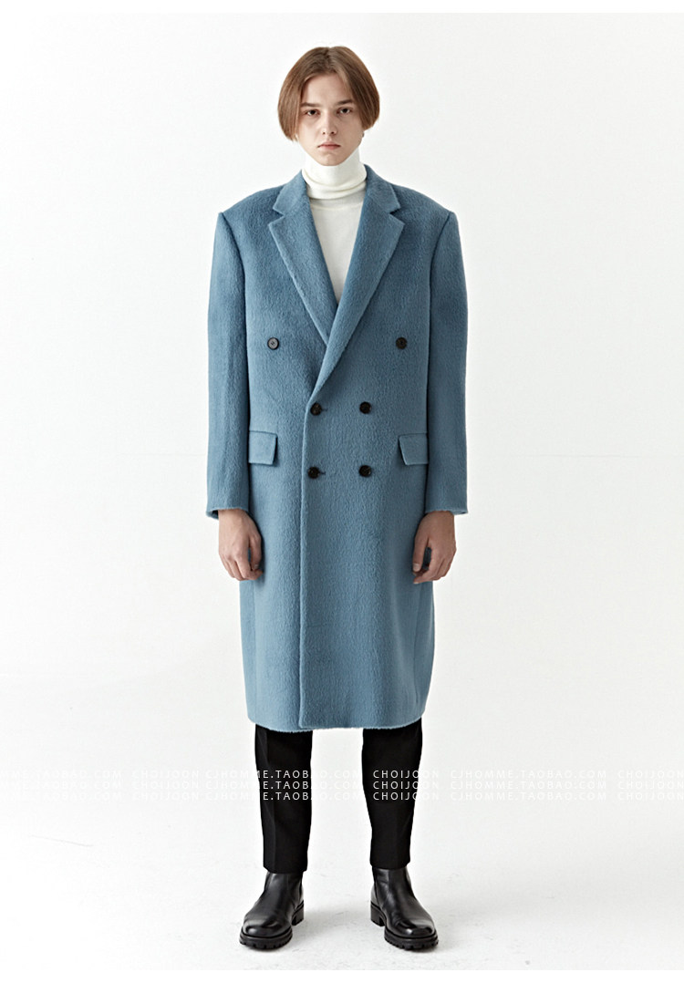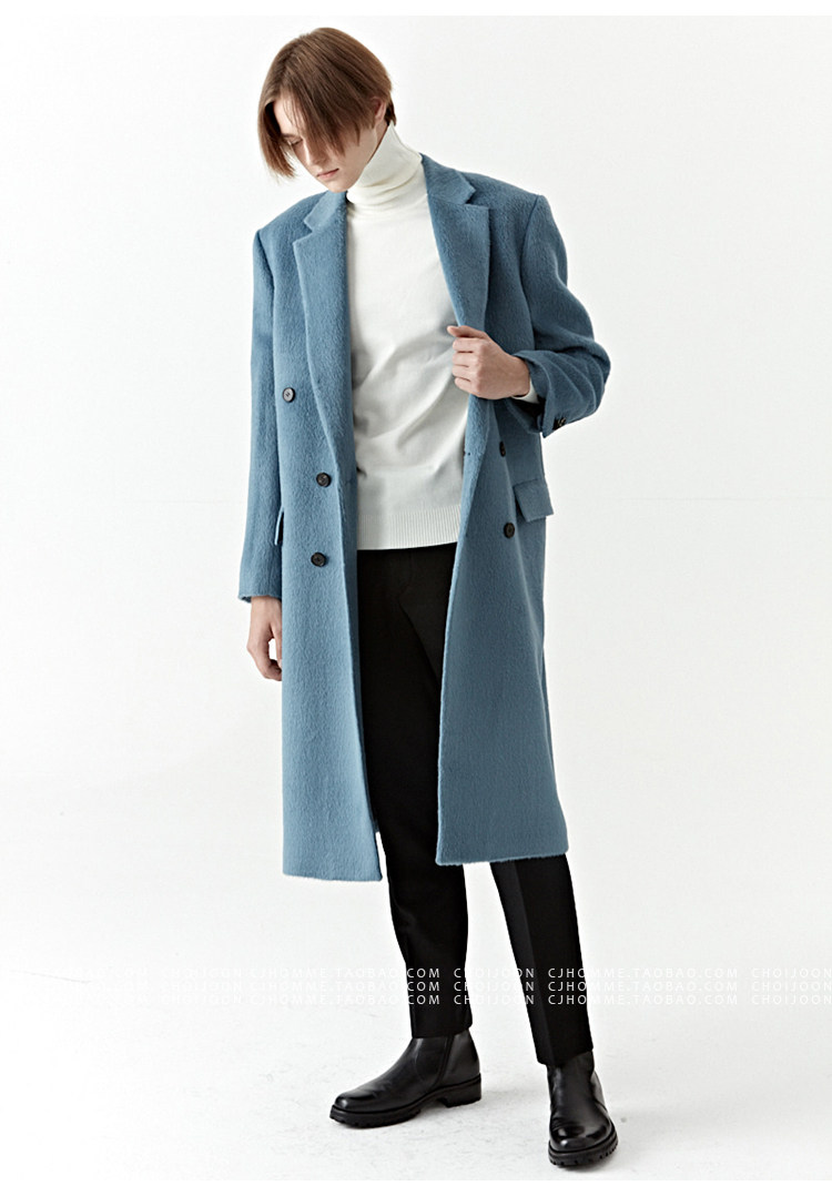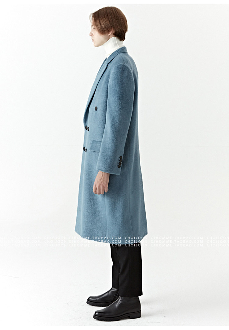 Модное лазурное демисезонное шерстяное пальто, куртка, в корейском стиле