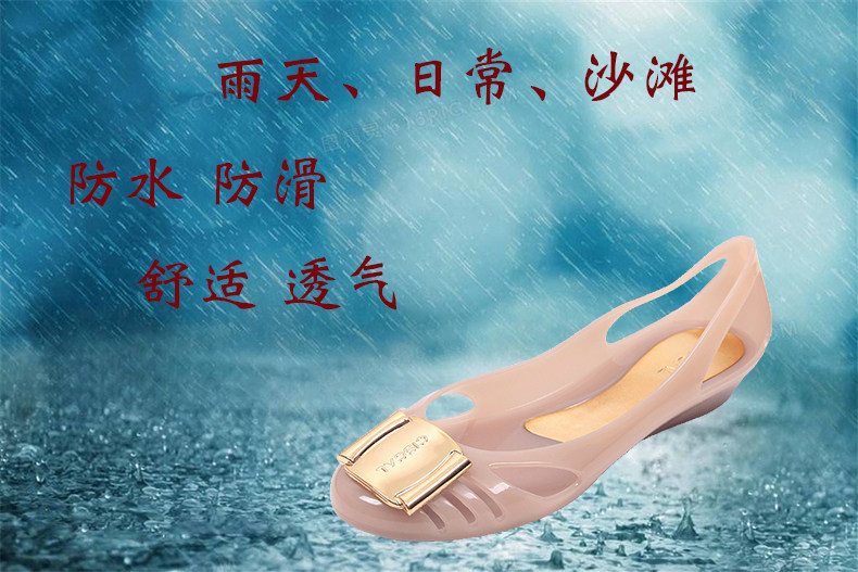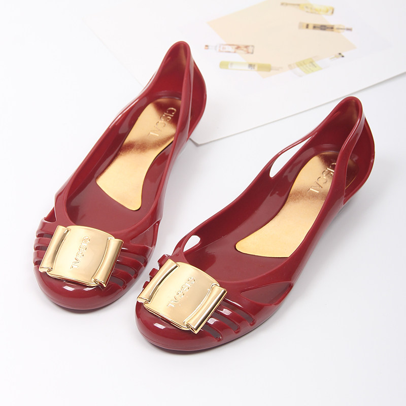 Женские пластиковые сандалии с кристаллами, новые модные туфли с полыми отверстиями, пляжная обувь на плоском каблуке, нескользящие водонепроницаемые резиновые сапоги