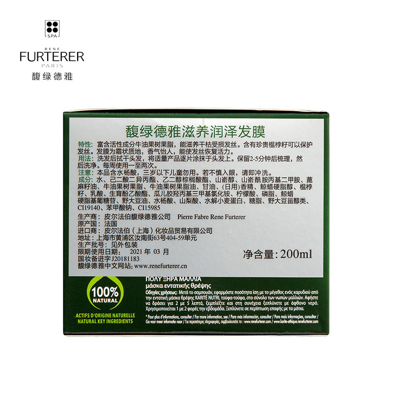 Rene Furterer/馥绿德雅 Популярная восстанавливающая плавная лечебная маска для волос подходит для вьющихся волос