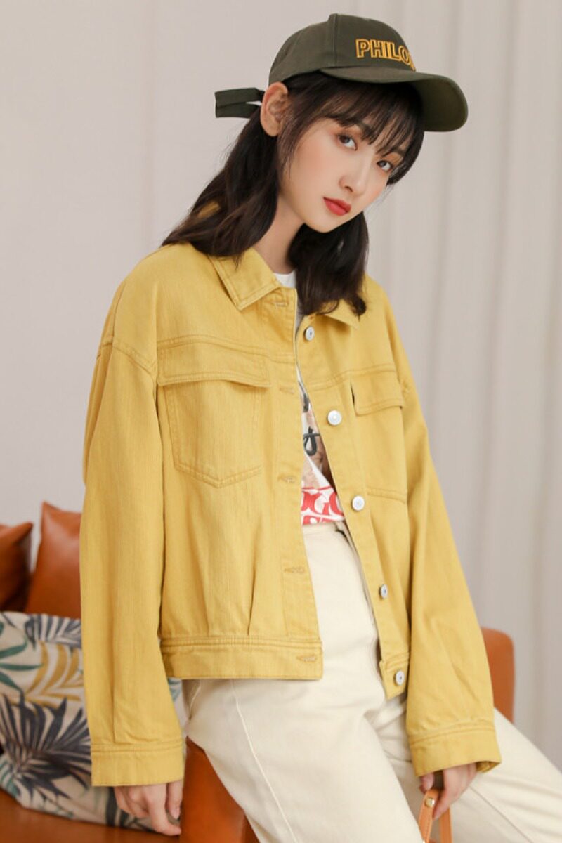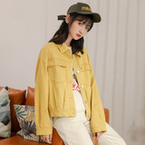 Желтая джинсовая короткая свежая куртка для школьников и студентов, в корейском стиле