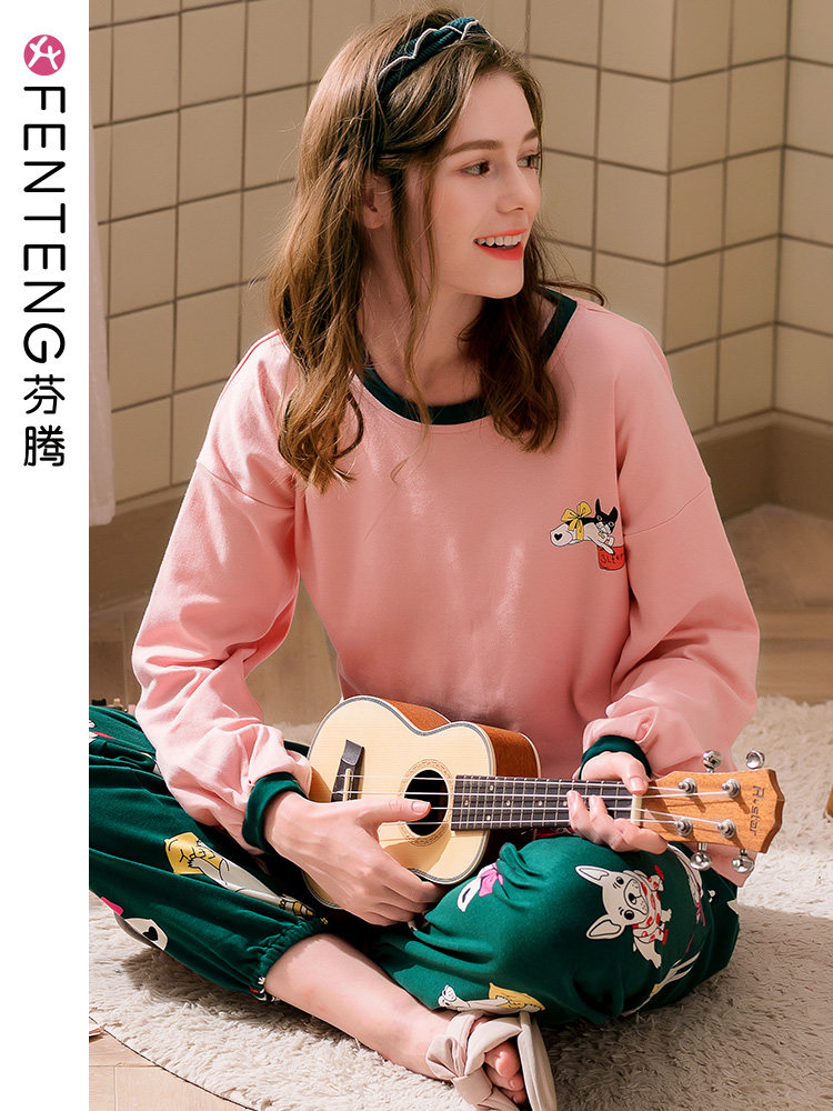 芬腾 Осенний лонгслив, хлопковая мультяшная пижама с круглым воротником, милый хлопковый комплект