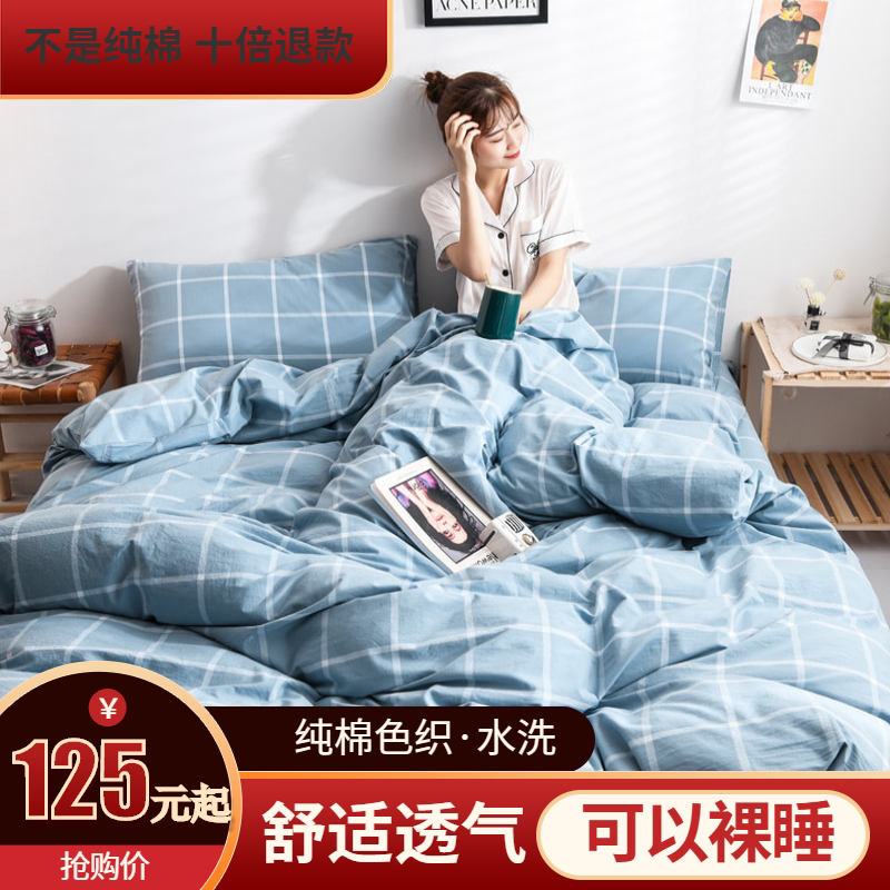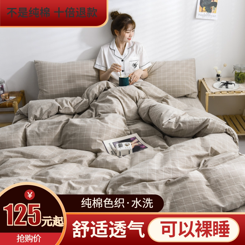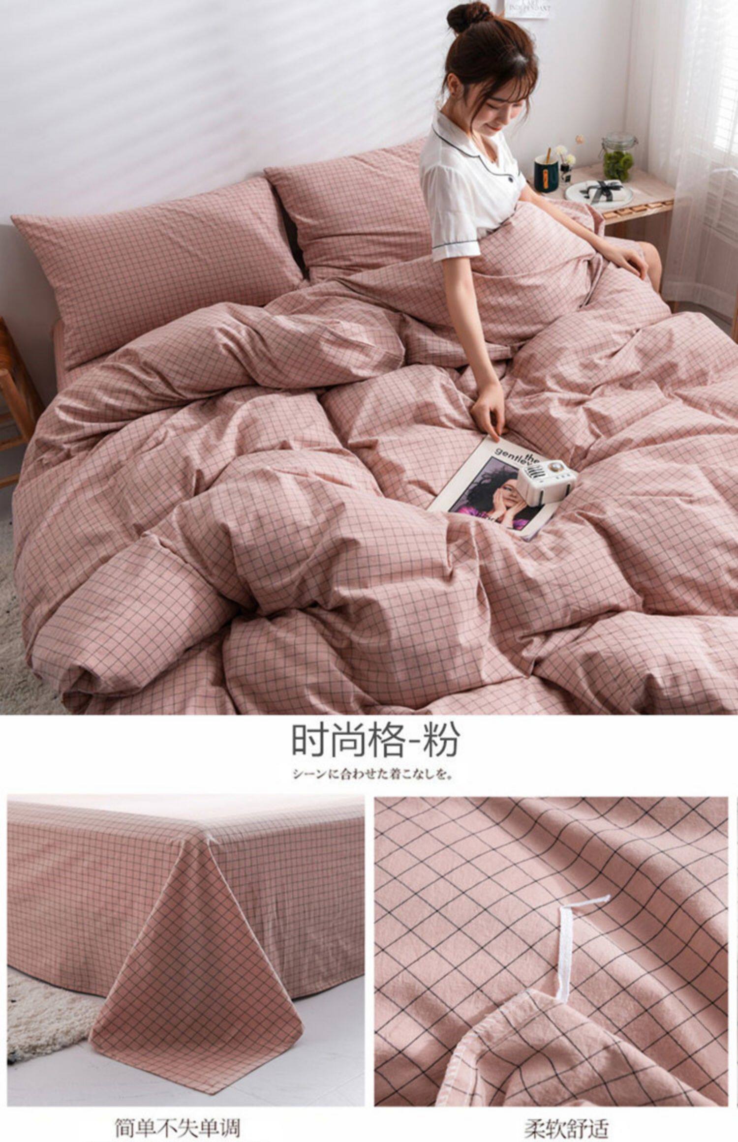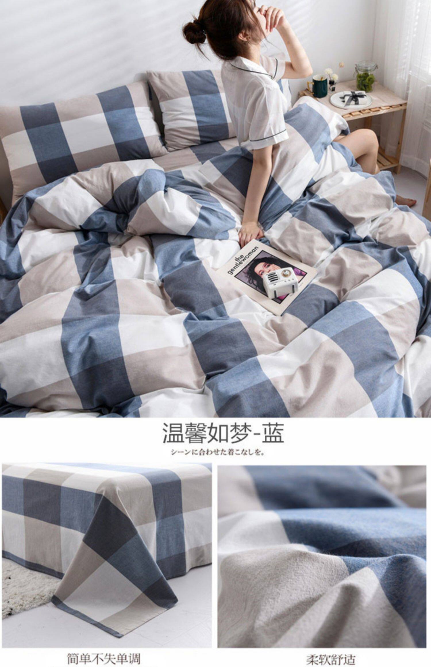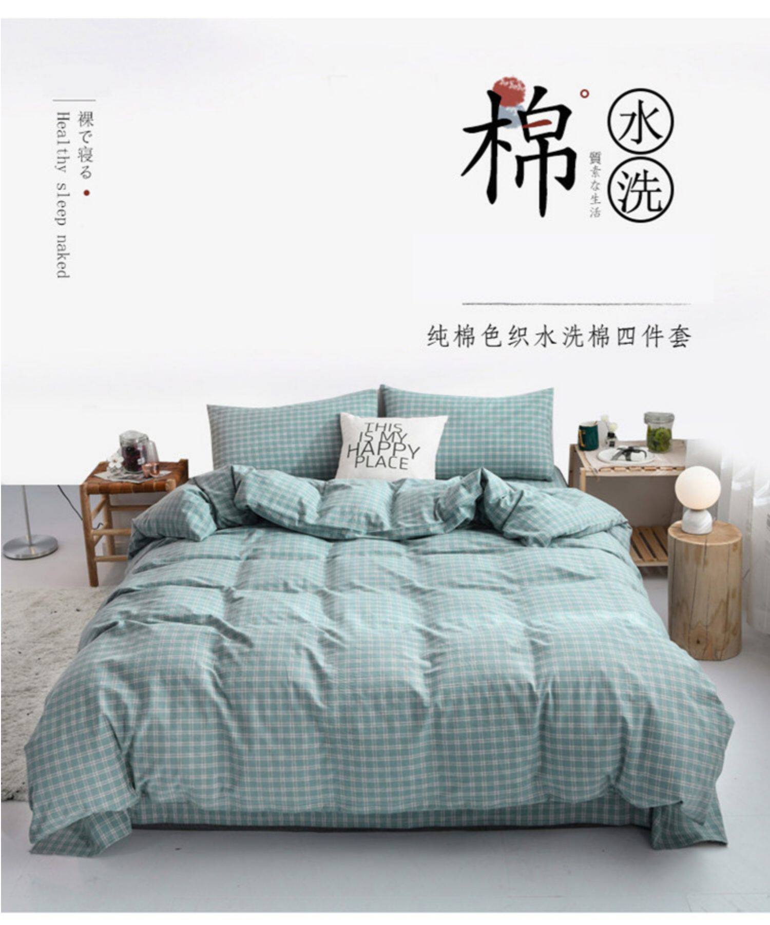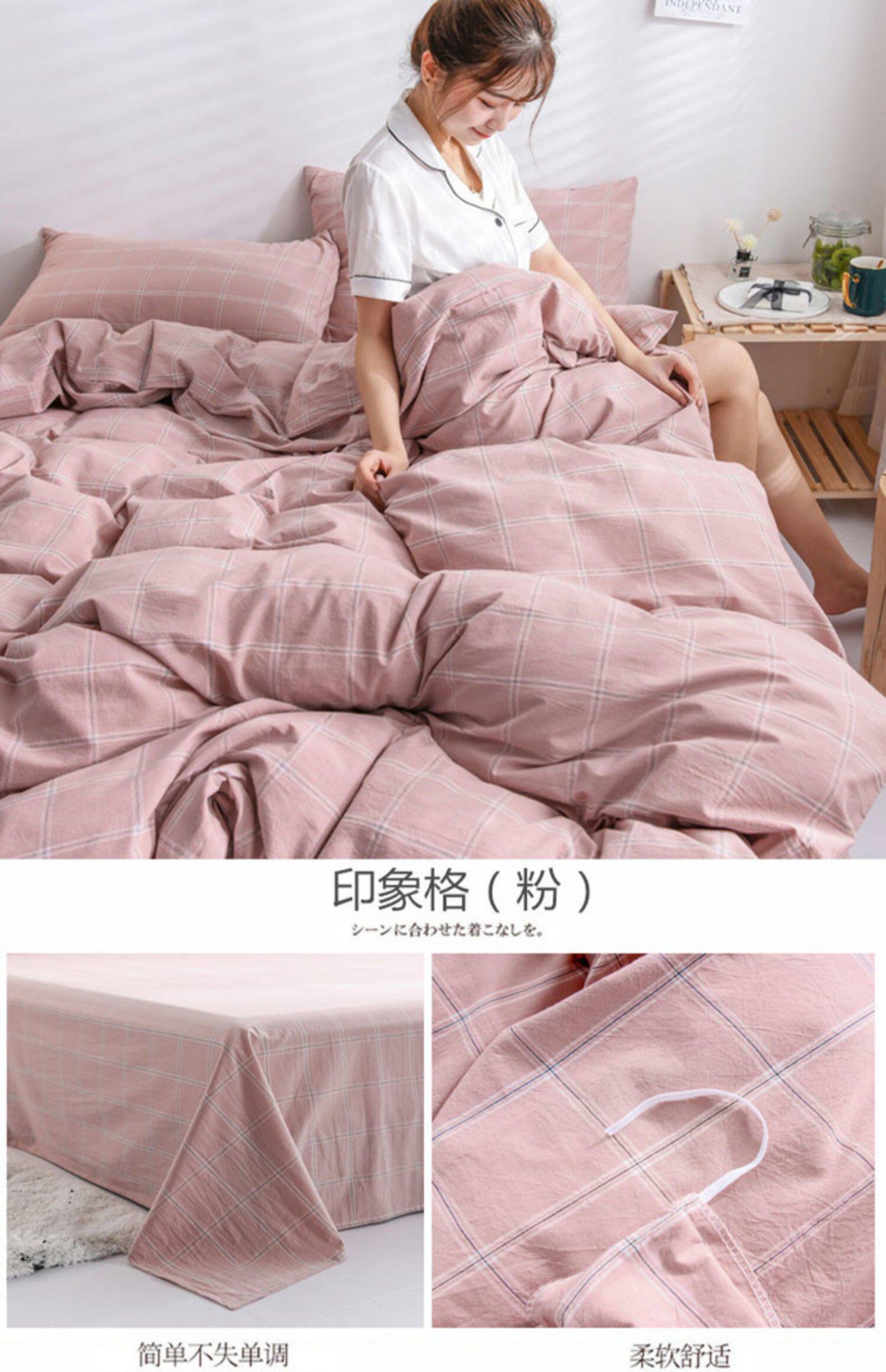 Японский хлопковый комплект, пододеяльник, простыня, 4 предмета, постельные принадлежности, простой и элегантный дизайн, 3 предмета