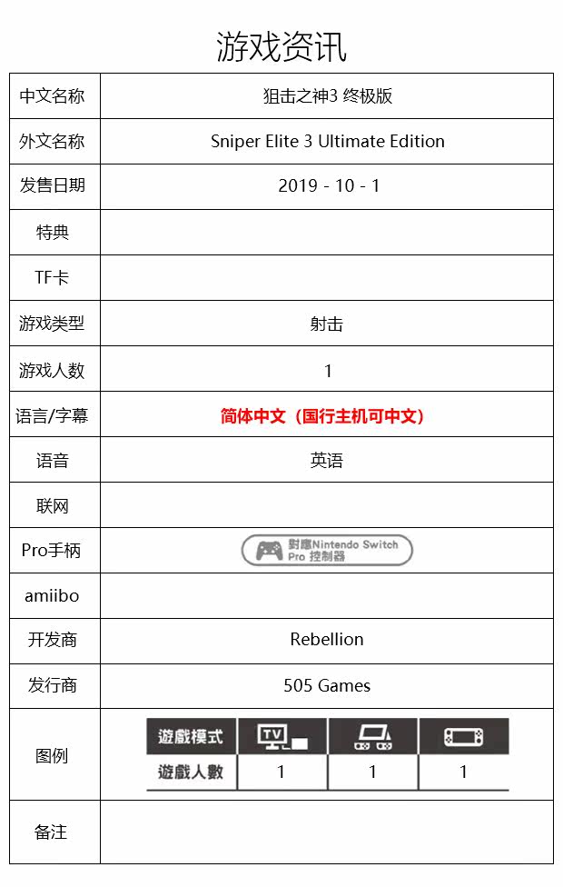 Switch NS Game Sniper God 3 Elite 3 V3 Ultimate Version Sniper Elite Съемка упрощенная китайская китайская китайская