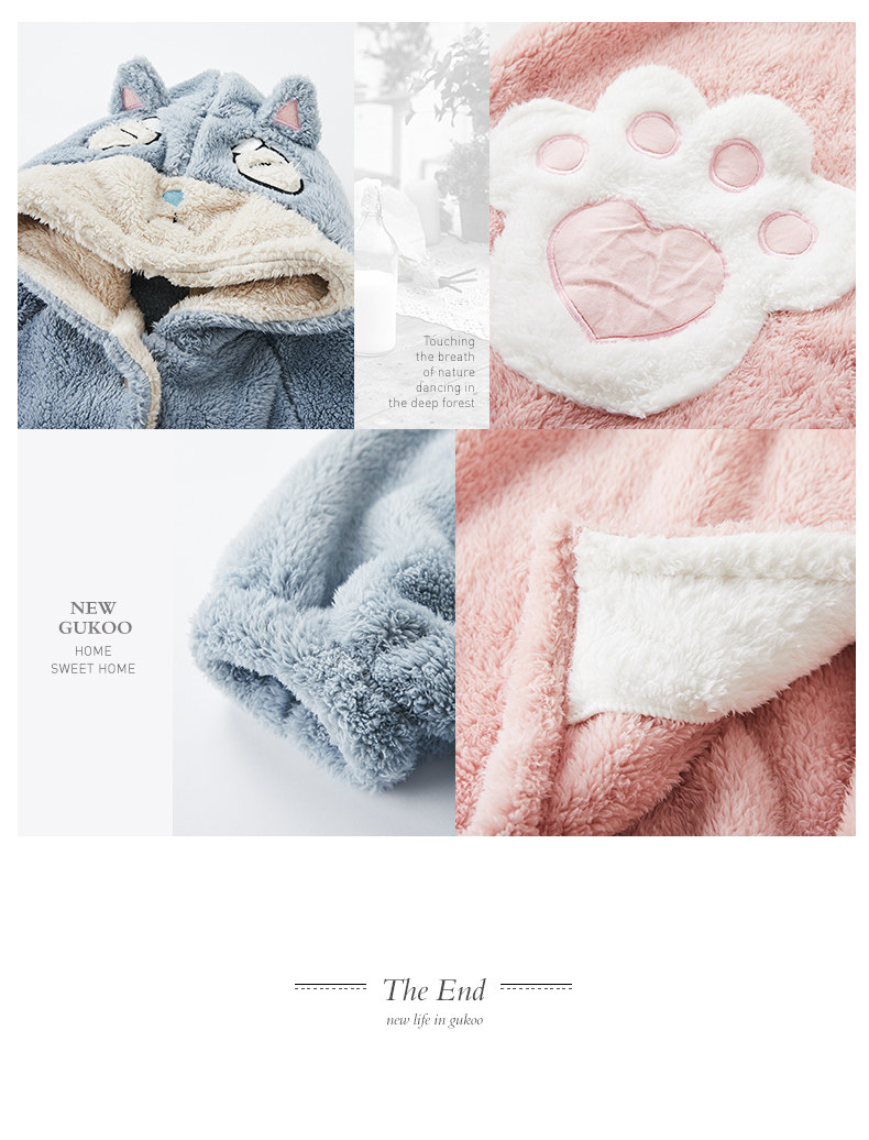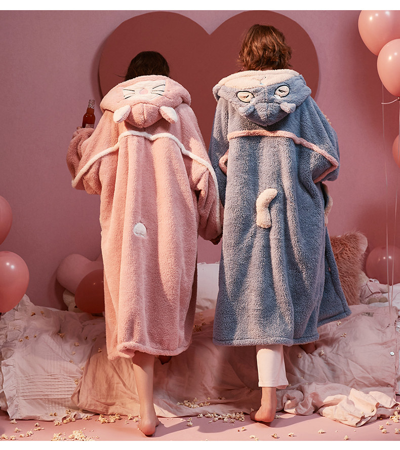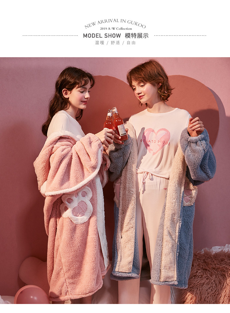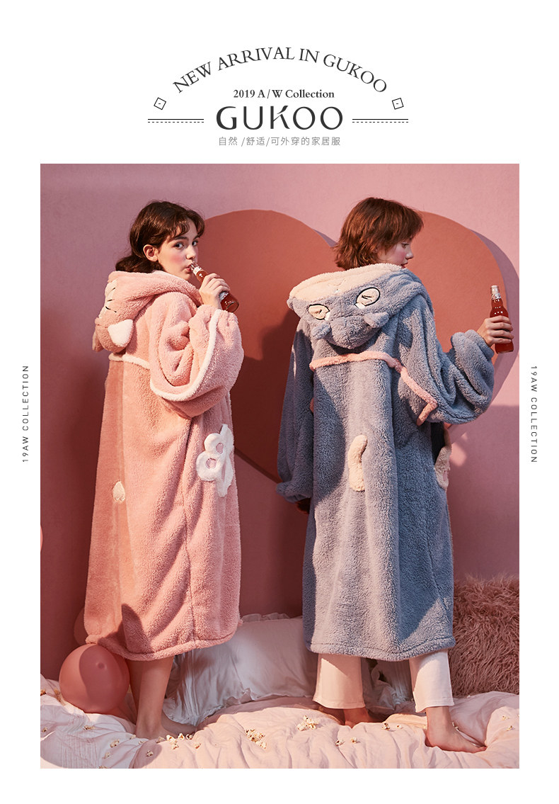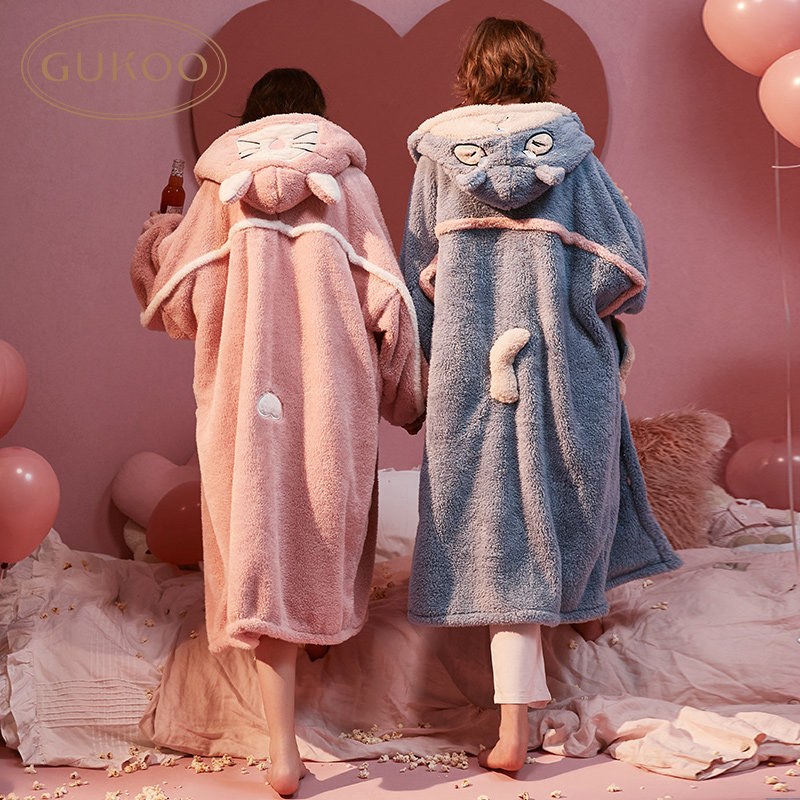 Gukoo/果壳 Демисезонный коралловый бархатный банный халат, мультяшная милая зимняя пижама с капюшоном