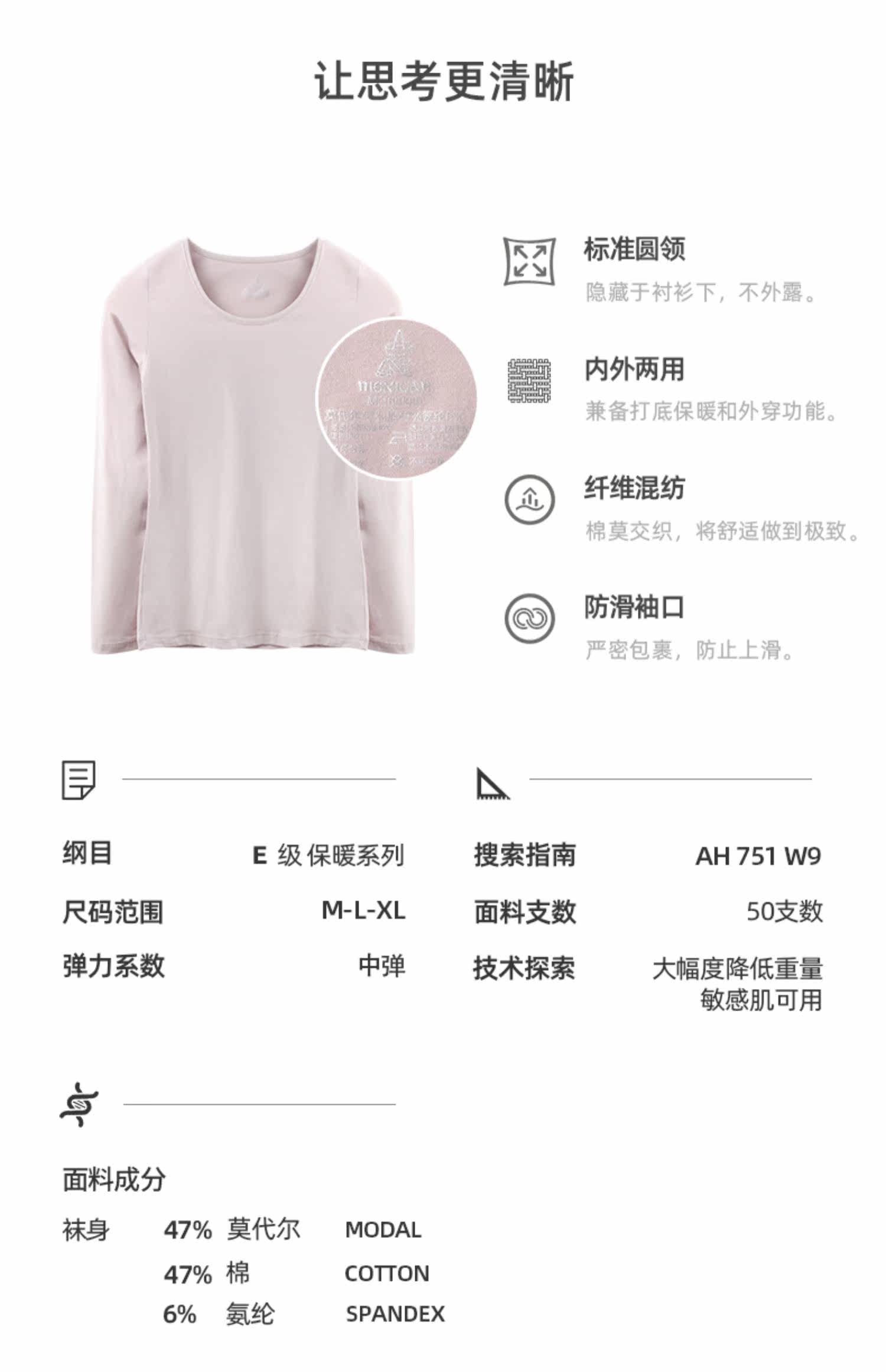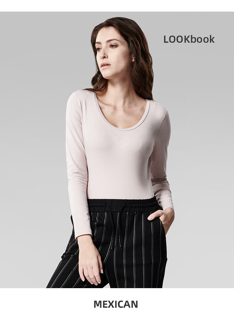 Хлопковое термобелье, тонкий базовый лонгслив с круглым воротником