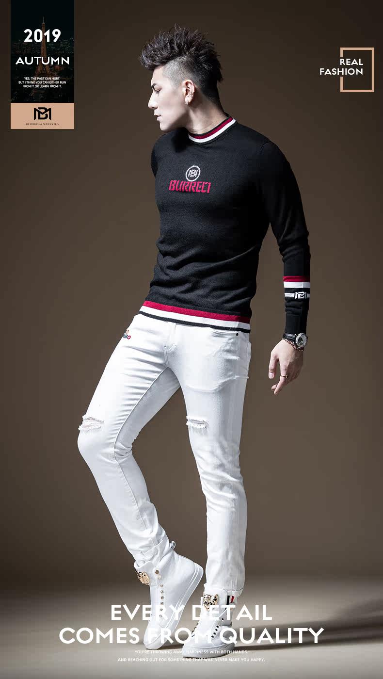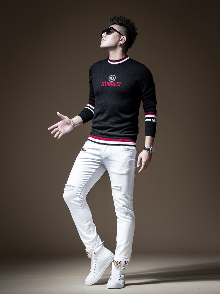 Демисезонный шерстяной трендовый свитер, высокий воротник, с вышивкой, в корейском стиле