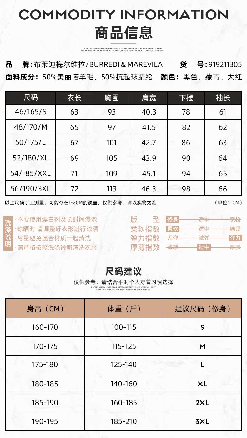 | Размер: | 46/S/165, 48/M/170, 50/L/175, 52/XL/180, 54/XXL/185, 56/XXXL/190, 58/XXXXL/195, Пожалуйста, проконсультируйтесь с обслуживанием клиентов, чтобы получить точный размер |