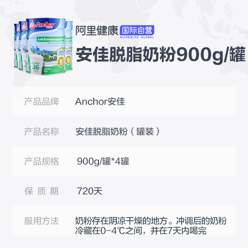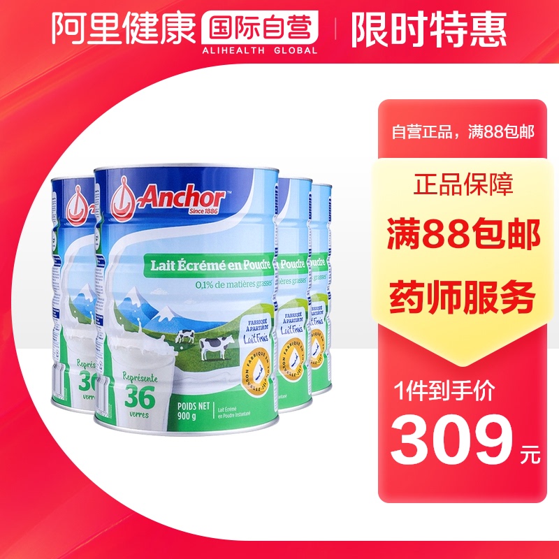 Новая Зеландия Anjia Импортированный скименный молочный порошок может быть взрослым высоким кальцием среднего уровня и пожилой молочной порошок для завтрака 900G*4