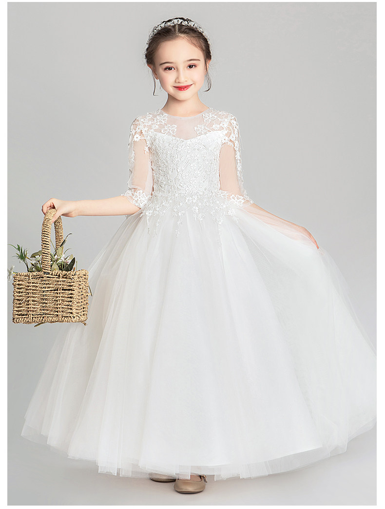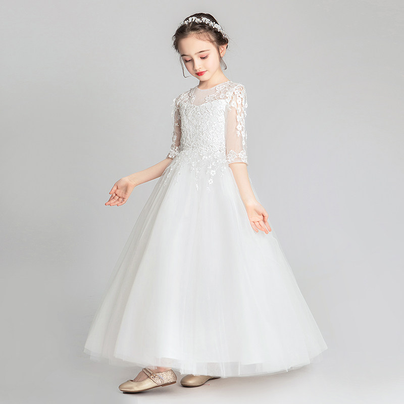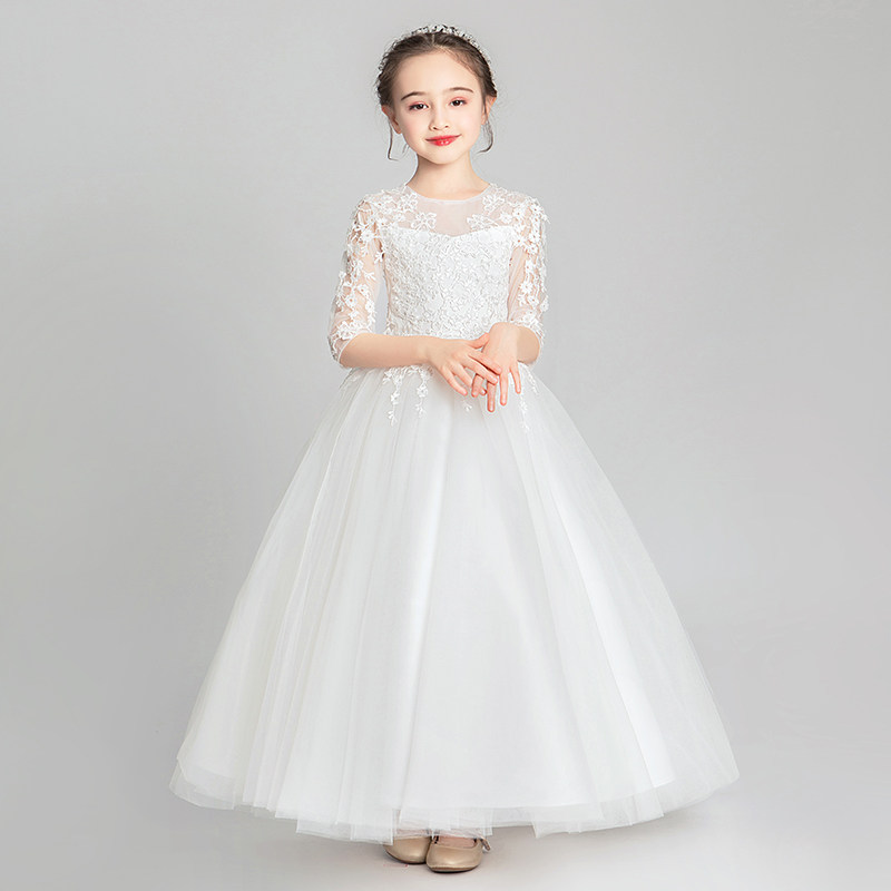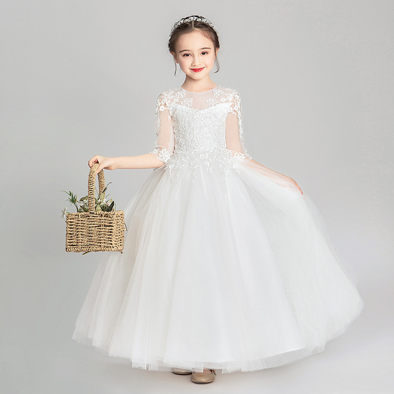 Белый наряд маленькой принцессы, юбка, свадебное платье, детский наряд для музыкальных выступлений, в западном стиле