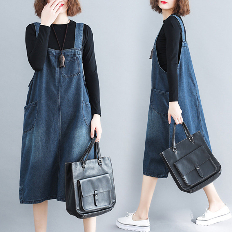 Длинное платье, ретро джинсовый сарафан, юбка, городской стиль, 2021 года, большой размер, средней длины