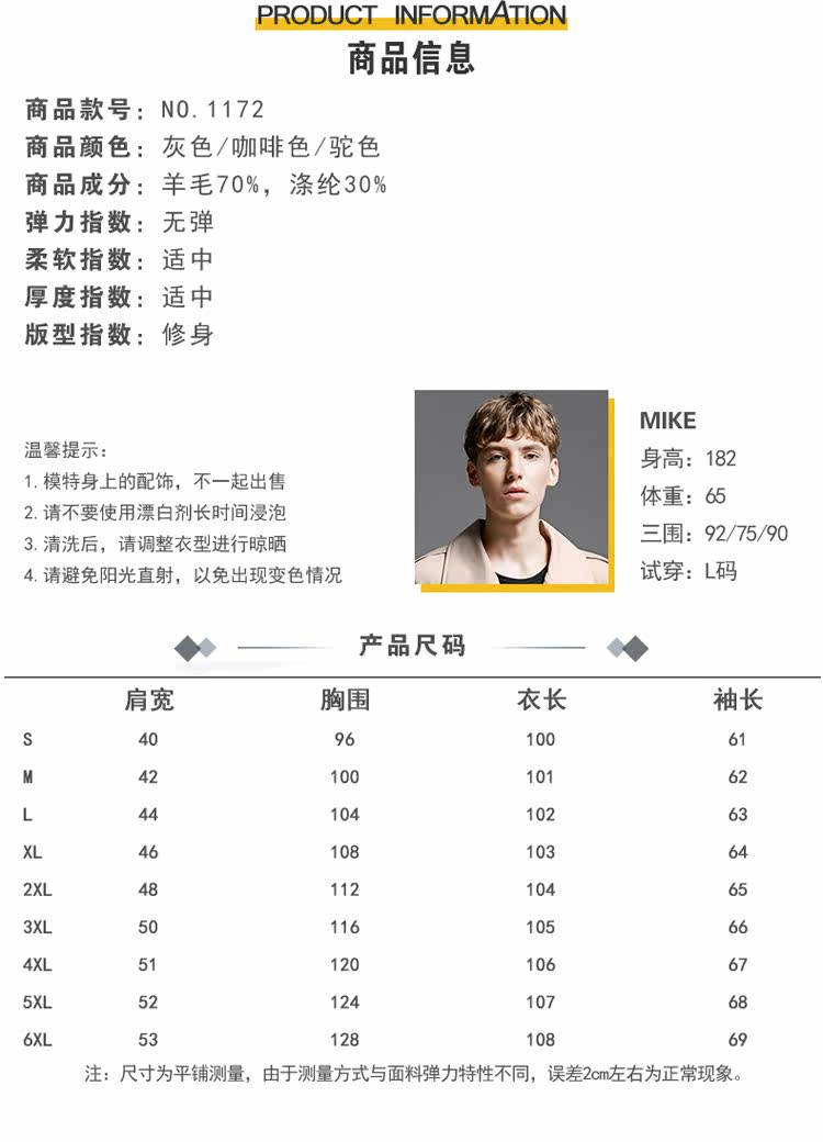 Шерстяной демисезонный лонгслив, шерстяное пальто, плащ, европейский стиль