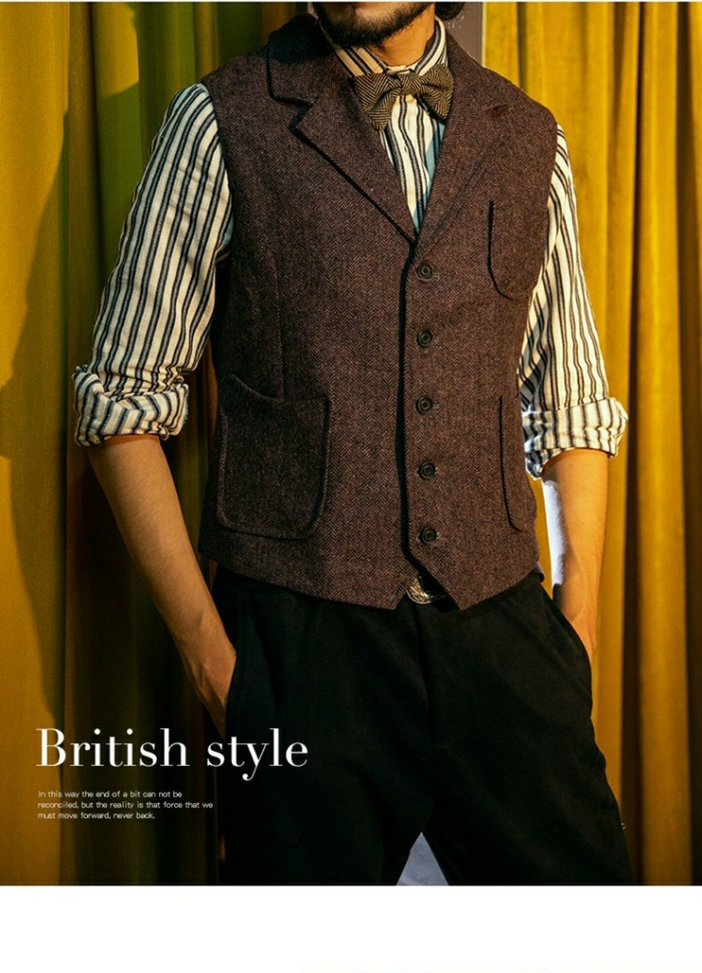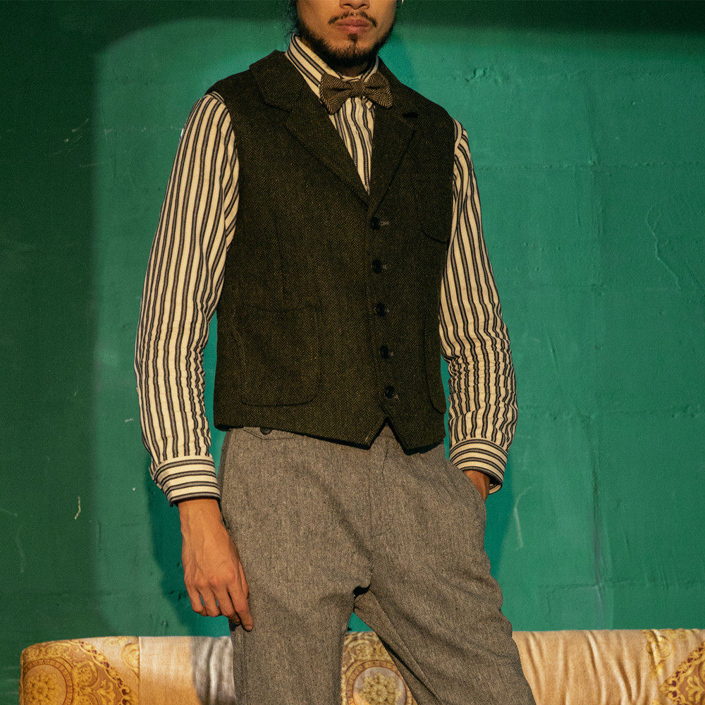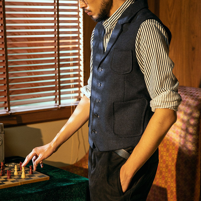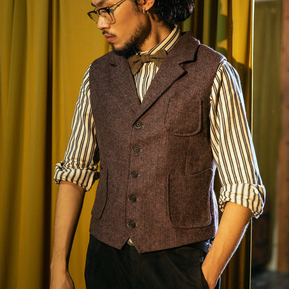 Демисезонный ретро костюм, шерстяной жилет, европейский стиль, в американском стиле, в британском стиле