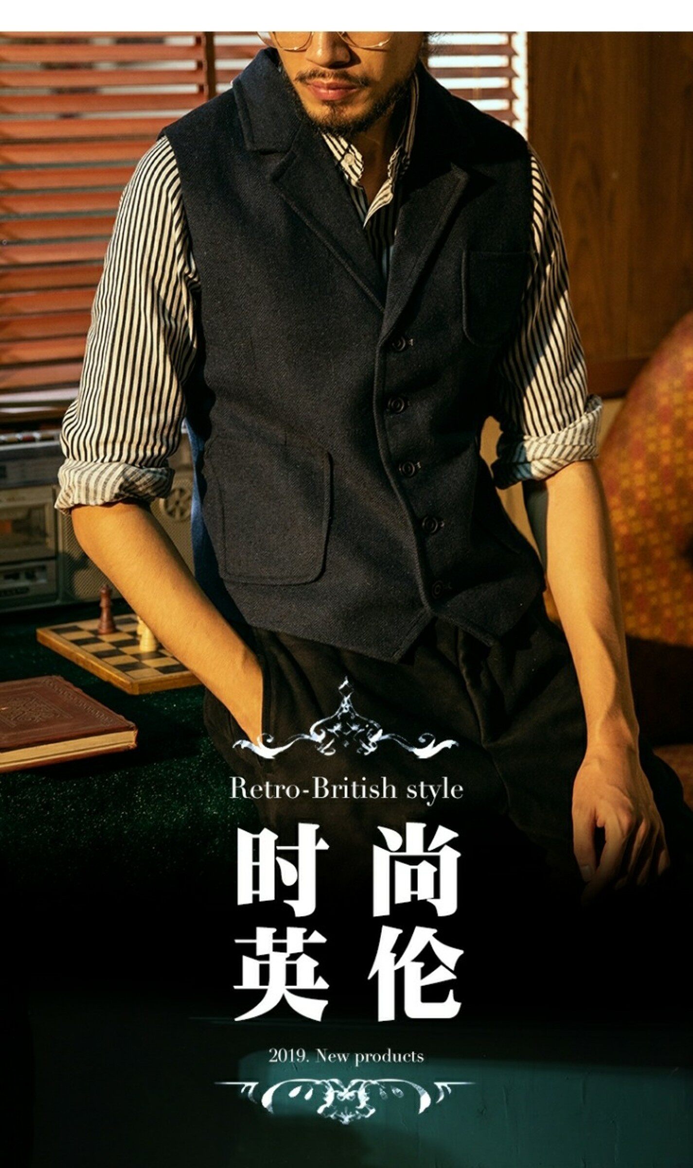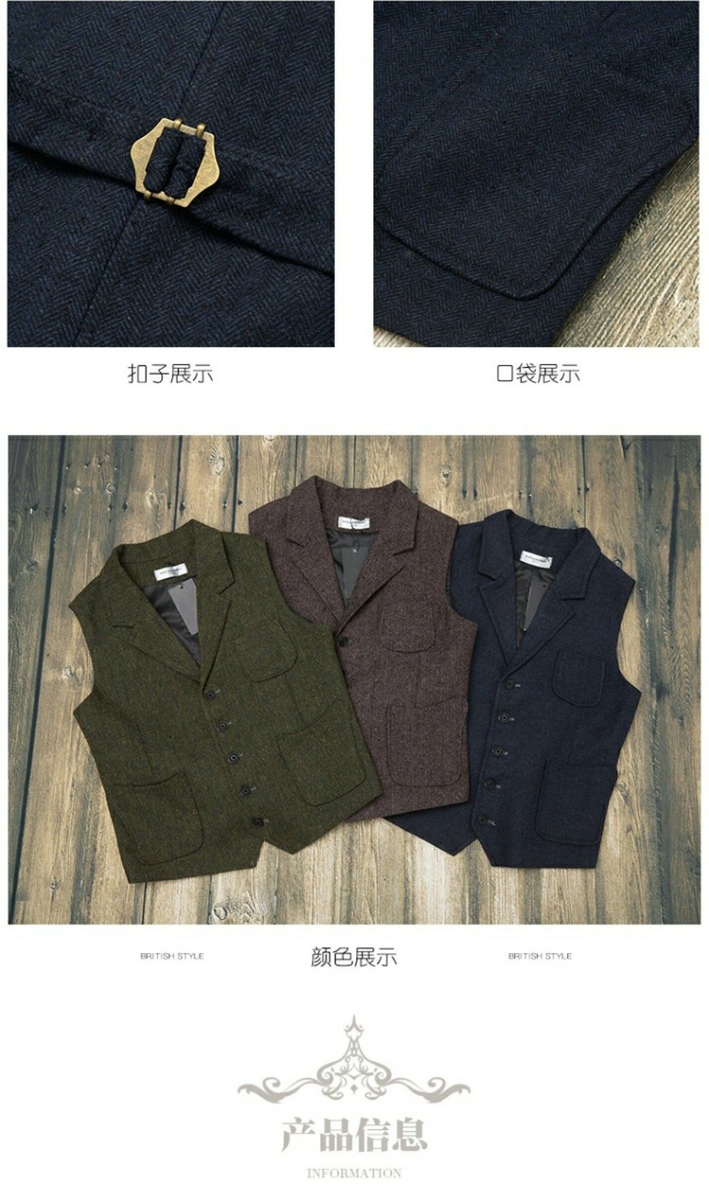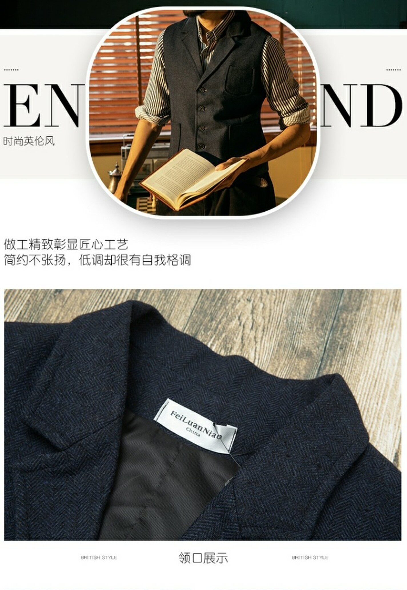 Демисезонный ретро костюм, шерстяной жилет, европейский стиль, в американском стиле, в британском стиле