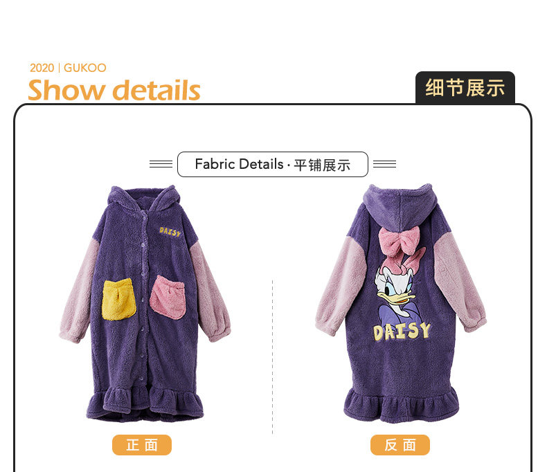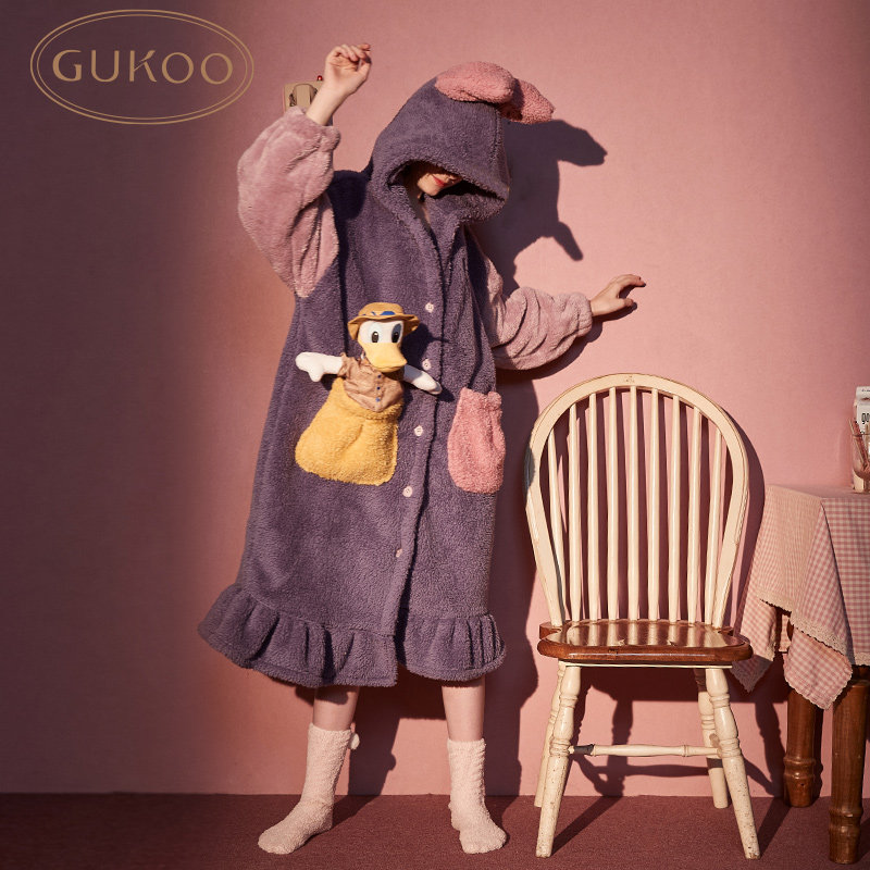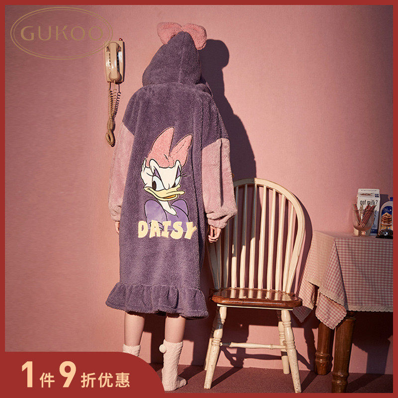 Gukoo/果壳 Дисней, демисезонный коралловый бархатный банный халат с капюшоном, пижама, юбка для отдыха
