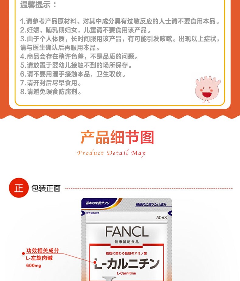 [Али здравоохранение] Fancl L -карнитиновая капсула 90 Meta VB VB Вспомогательная потерю веса импорт потеря веса