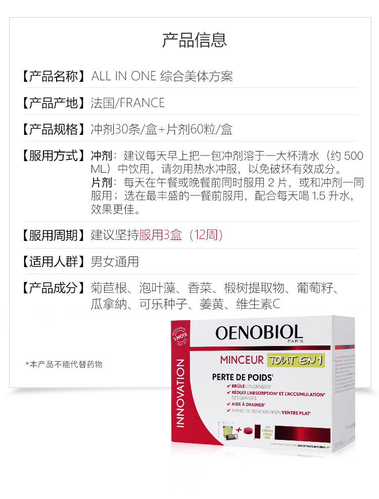 Oenobiol onone bye в одном кузовах пакете Greenylon французский импортный жир, снижающий пищу здравоохранения
