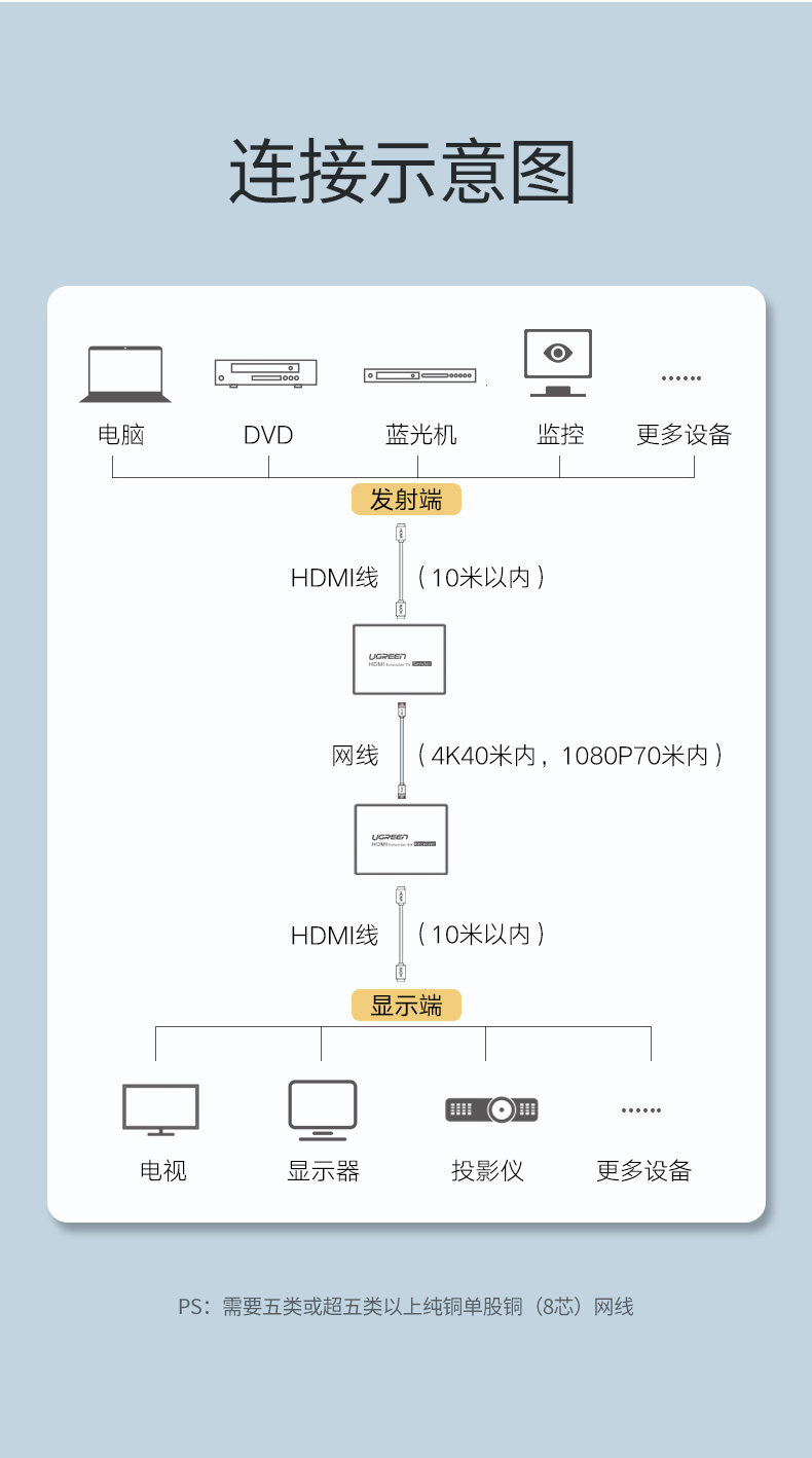 Green Union HDMI Extender Одно сетевая сеть передачи 40/70 метров поддерживает EDID в сетевой порт в HDMI передачи 4K высокого уровня видеоизора