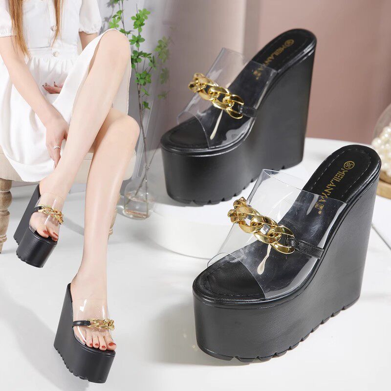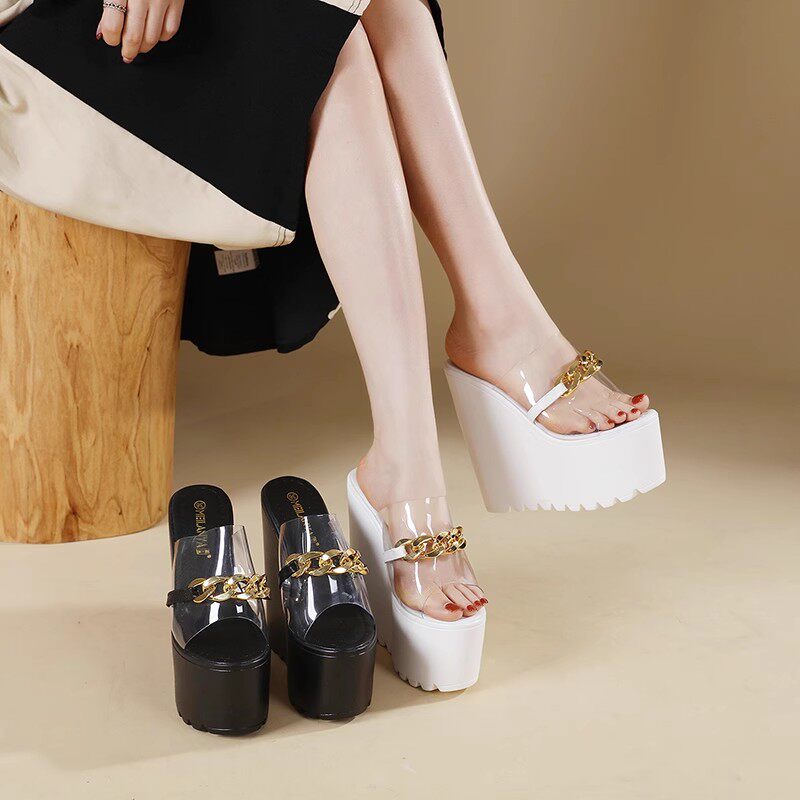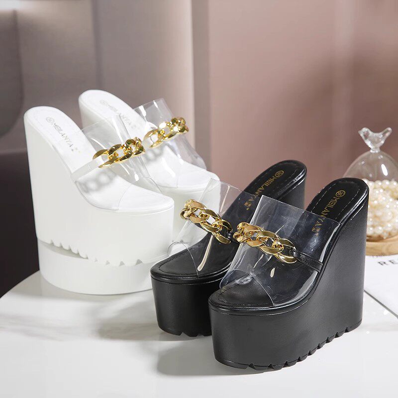 Летние слайдеры, высокие тапочки на платформе, 17см