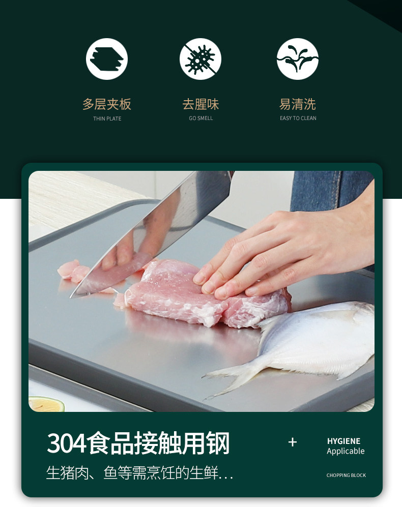 onlycook Двухсторонняя режущая доска 304 Клейская клейкая панель из нержавеющей стали.