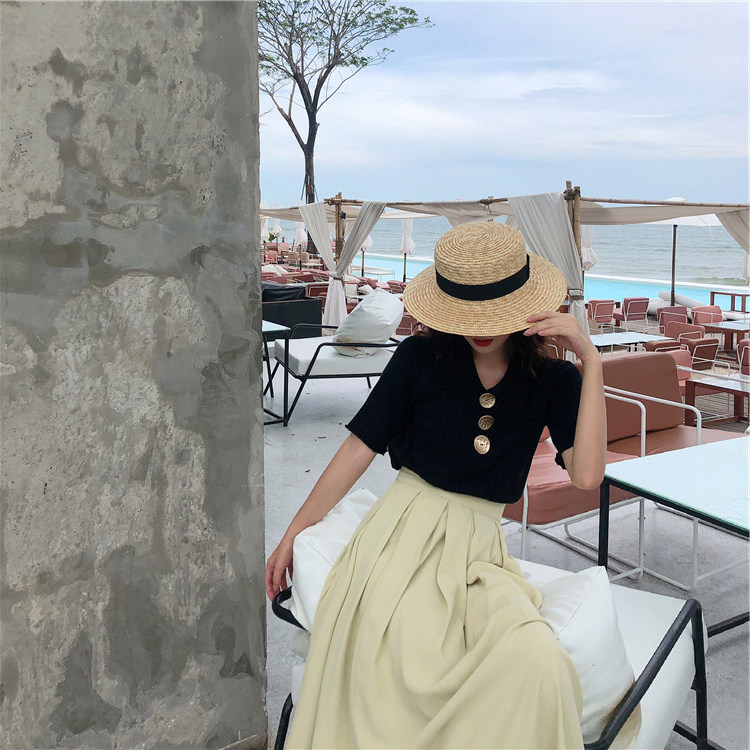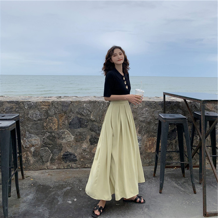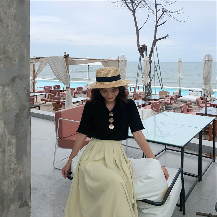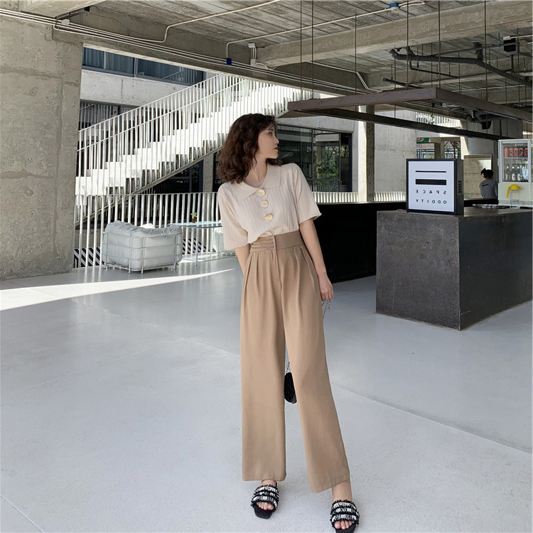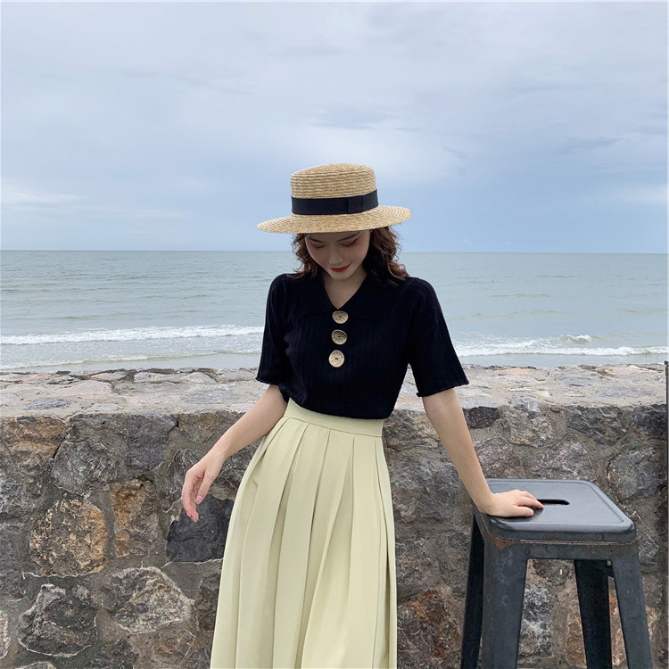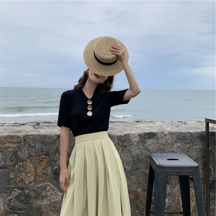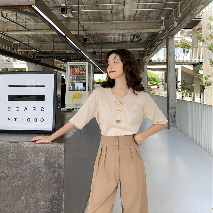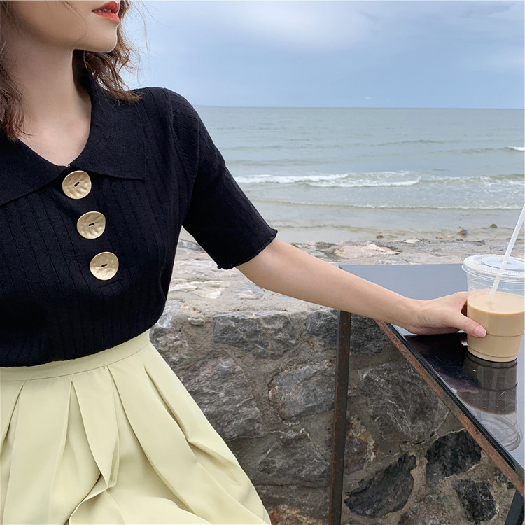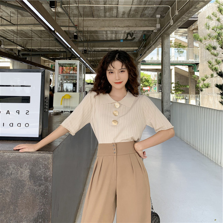 Летний трикотажный свитер, футболка, сезон 2021, в корейском стиле, оверсайз, короткий рукав, воротник поло